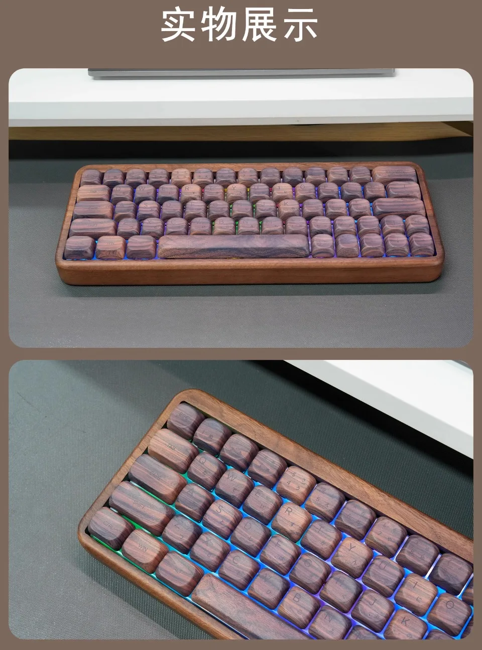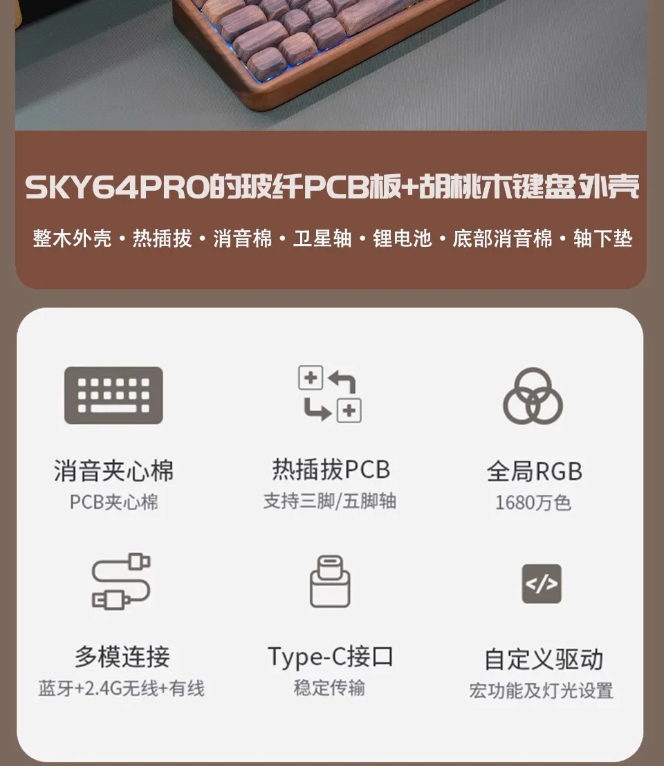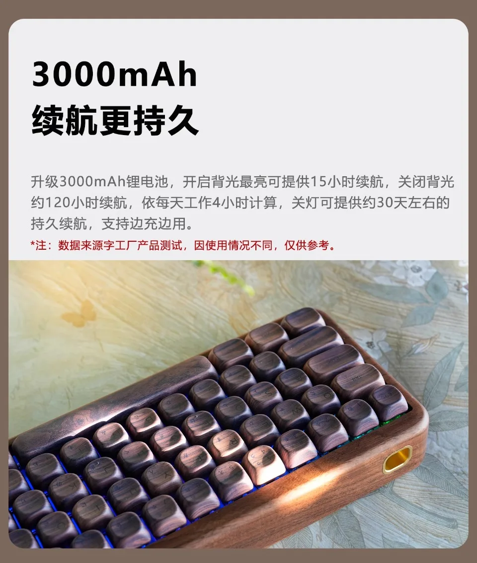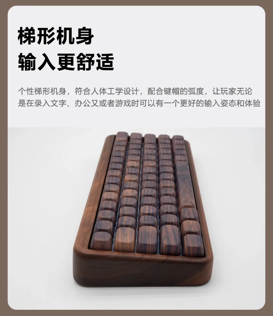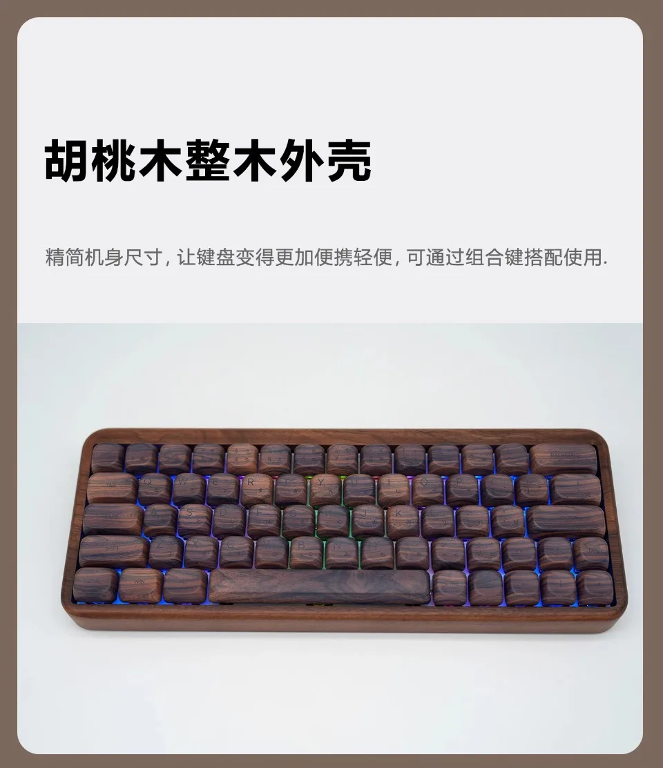 1.La carcasa de madera de nogal, agiliza el tamaño del cuerpo, de modo que el teclado se vuelve más portátil y liviano, se puede usar con una combinación de teclas.