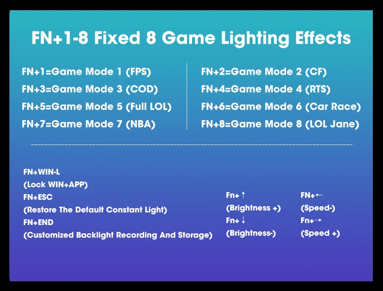 5. Después de terminar de jugar, presione FN + ESC para restablecer el teclado.