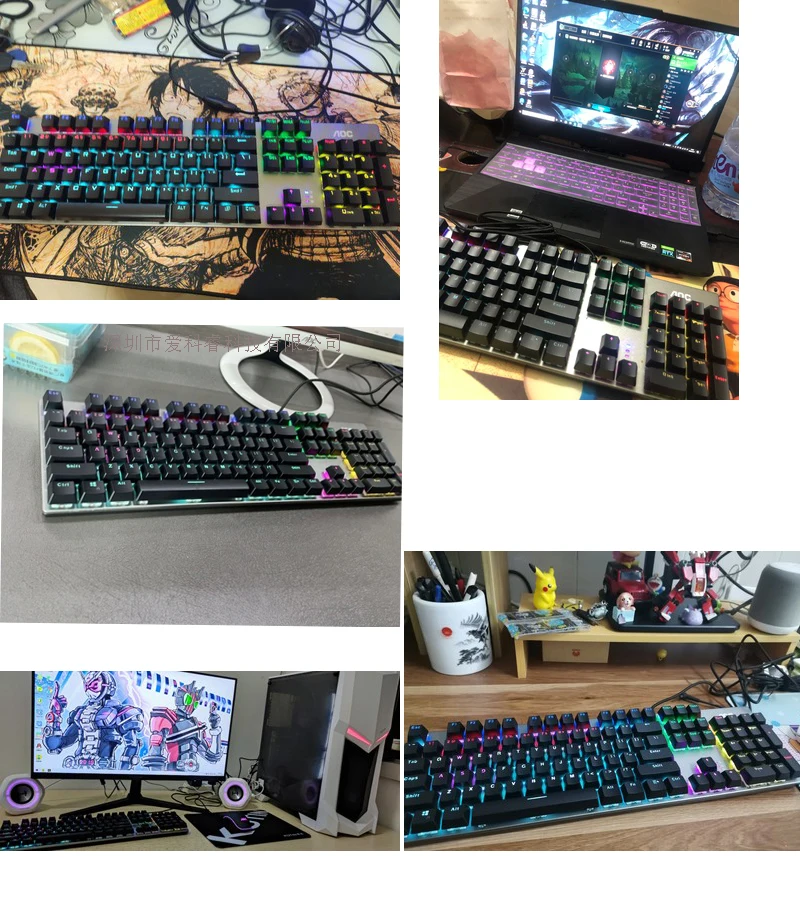 El teclado tiene 20 tipos de modos de luces. Cada tapa tiene su propio color, el modo de luz diferente hace que las diferentes tapas estén encendidas/apagadas.