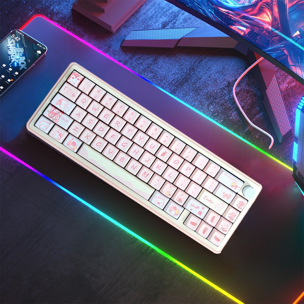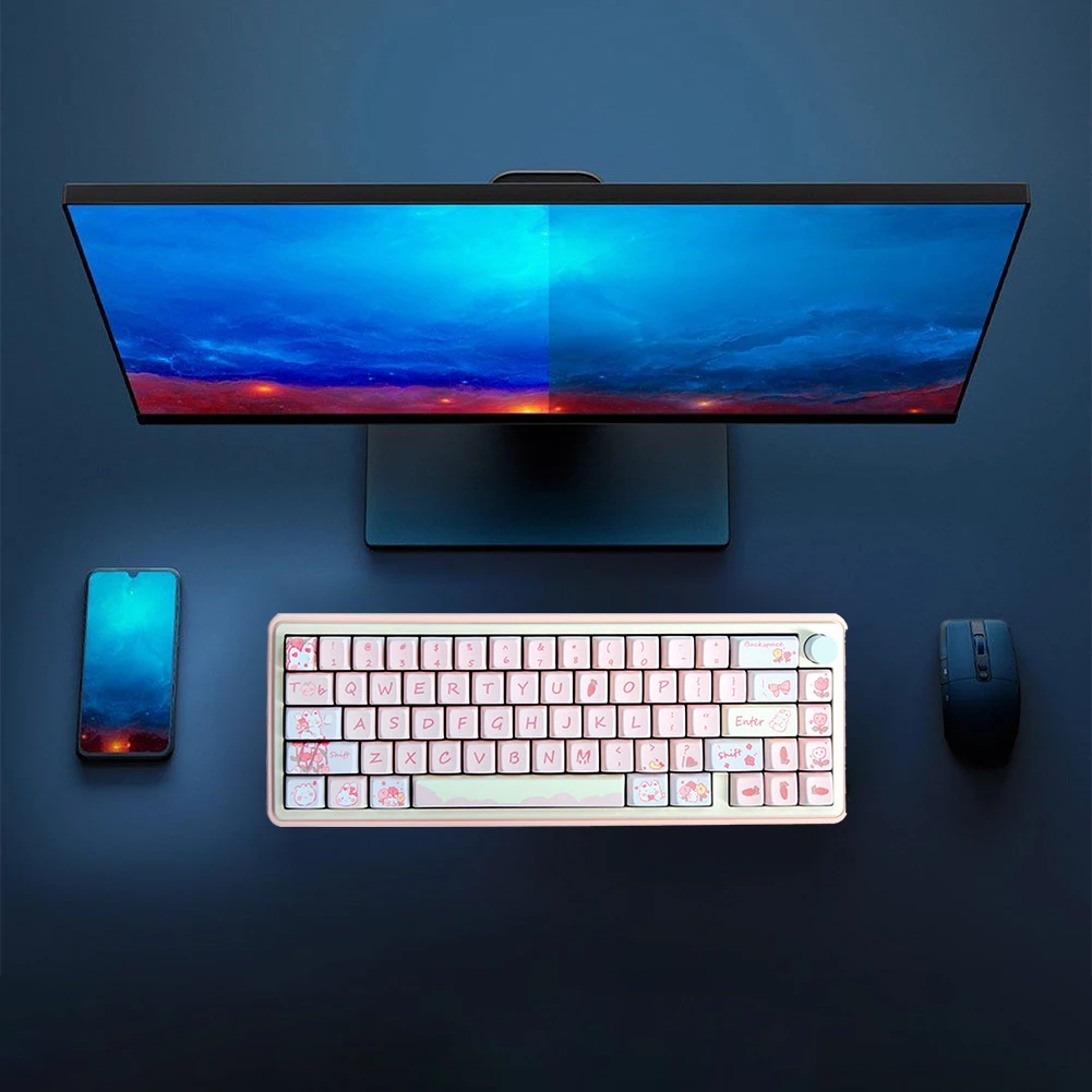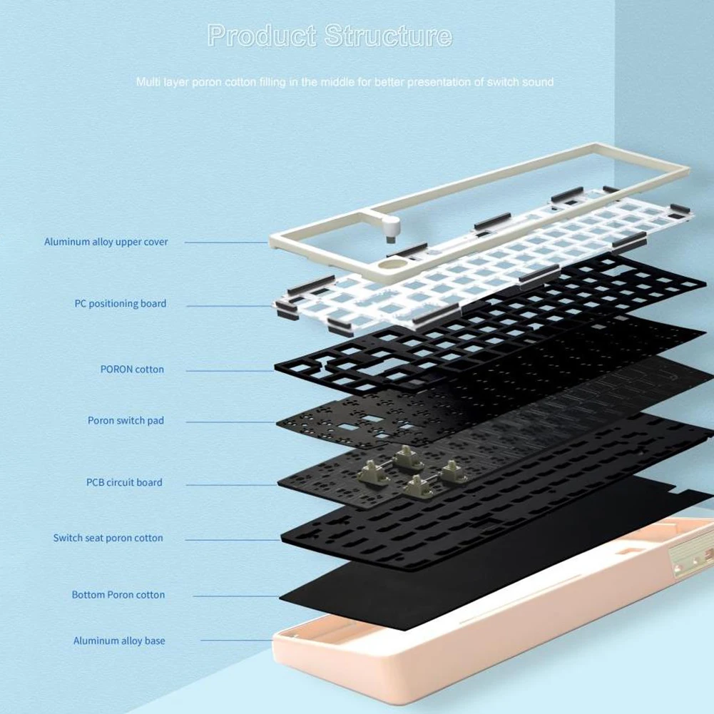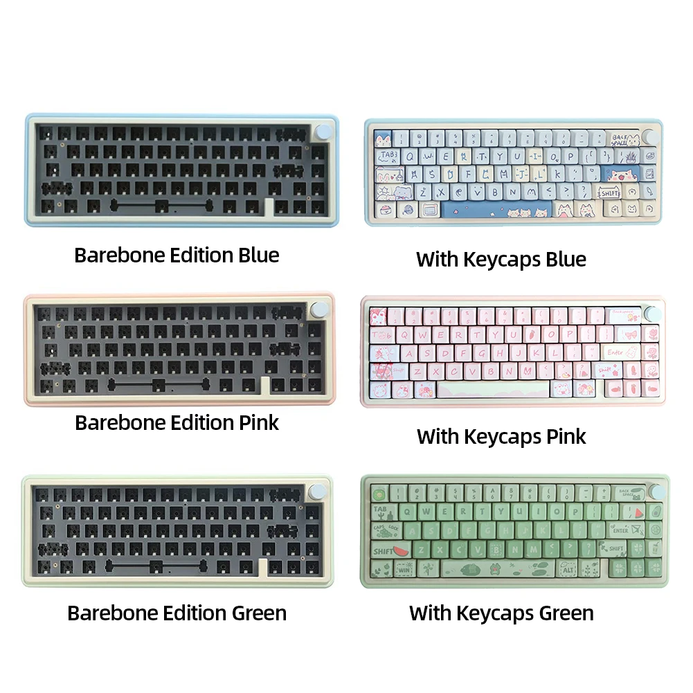 Kit de Teclado mecánico con perilla, DIY Teclado mecánico, retroiluminación RGB, aleación de aluminio, conexión de 3 modos para PC portátil de escritorio Característica: 1. Diseño de aleación de aluminio duradero:La resistente carcasa de aleación de aluminio proporciona un diseño elegante y duradero que puede soportar un uso intenso y durar más que otros materiales. 2. Perilla de aleación de aluminio multifuncional:La perilla multimedia de aleación de aluminio permite a los usuarios controlar fácilmente el volumen, el brillo y otros ajustes con precisión y facilidad. 3. Posiciones LED orientadas al sur e iluminación RGB:Las posiciones LED orientadas al sur proporcionan una iluminación óptima para cada tecla, mientras que el efecto de iluminación RGB ofrece una experiencia personalizable y visualmente atractiva. 4. Batería de gran capacidad:El Teclado mecánico está equipado con una batería de gran capacidad de 3000mAh, lo que permite largos períodos de uso sin la necesidad de recargar con frecuencia. 5. Conectividad versátil:El teclado admite tres modos de conectividad: compatible con Bluetooth, inalámbrico de 2,4G y separación de cable tipo C. También cuenta con un interruptor en el lado izquierdo para seleccionar el modo deseado con facilidad. El rollover completo de la llave garantiza un rendimiento completo y admite Qmk y cambio de llave a través de sistemas de código abierto. Especificación: Origen: China continental Color: azul, Rosa, Verde (opcional) Estructura: Junta Posición clave: 67 Capacidad de la batería: 3000mAh Tecnología de procesamiento: Proceso de capa deslizante subsuperficial Proceso de carcasa: Mecanizado CNC Tecnología de superficie: pulverización de polvo Material de la carcasa: aleación de aluminio Soporte VIA: Sí Soporte del sistema: Windows/ ParaMac/para iOS/Android Peso del producto: 1790G Tamaño del producto: aproximadamente 325x125x30mm/12,79x4,92x1,18 pulgadas Nota: