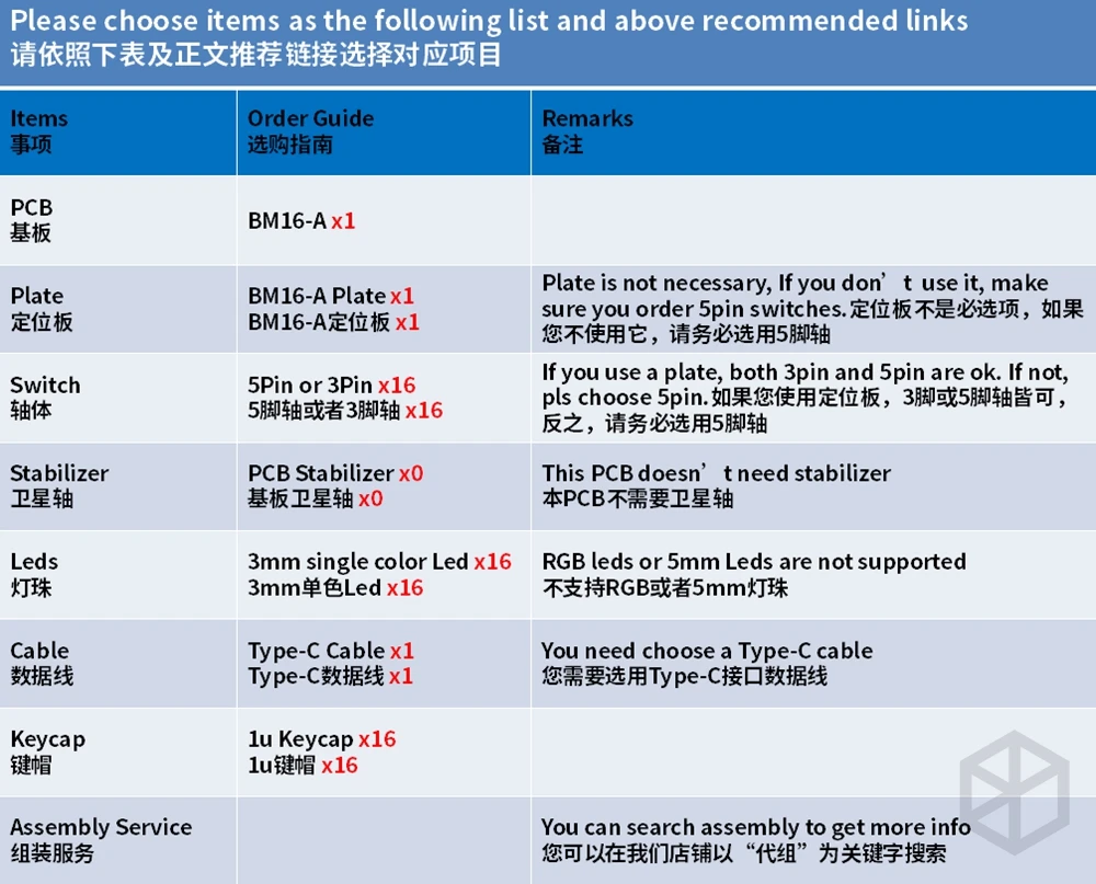 Especificaciones1 \ 16 teclas2 \ Admite la aplicación Flash sin conexión3 \ PCB totalmente programable4 \ 4 LEDs inferiores RGB bajo brillo (pre-soldados)5 \ Interfaz ICSP estándar6 \ MX/ALPS Soporte de vástago7. Todos los componentes de la placa se han soldado previamente para que la PCB esté lista para interruptores de llave y LED.8 \ Puerto tipo CCómo flashear BM16A, consulte este enlace: