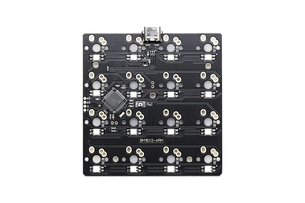 Especificaciones1 \ 16 teclas2 \ Admite la aplicación Flash sin conexión3 \ PCB totalmente programable4 \ 4 LEDs inferiores RGB bajo brillo (pre-soldados)5 \ Interfaz ICSP estándar6 \ MX/ALPS Soporte de vástago7. Todos los componentes de la placa se han soldado previamente para que la PCB esté lista para interruptores de llave y LED.8 \ Puerto tipo CCómo flashear BM16A, consulte este enlace: