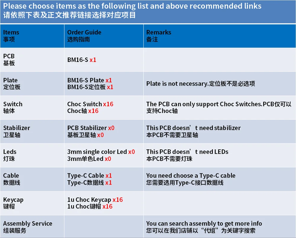 Especificaciones1 \ 16 teclas2 \ Admite la aplicación Flash sin conexión3 PCB totalmente programable (QMK)4 \ 16 Interruptor RGB LEDs (presoldado)5 \ Interfaz ICSP estándar6 \ soporte Choc Stem7. Todos los componentes de la placa han sido soldadas previamente para que la PCB esté lista para interruptores de llave y LED.8 \ Puerto tipo CCómo flashear BM16S, consulte este enlace: