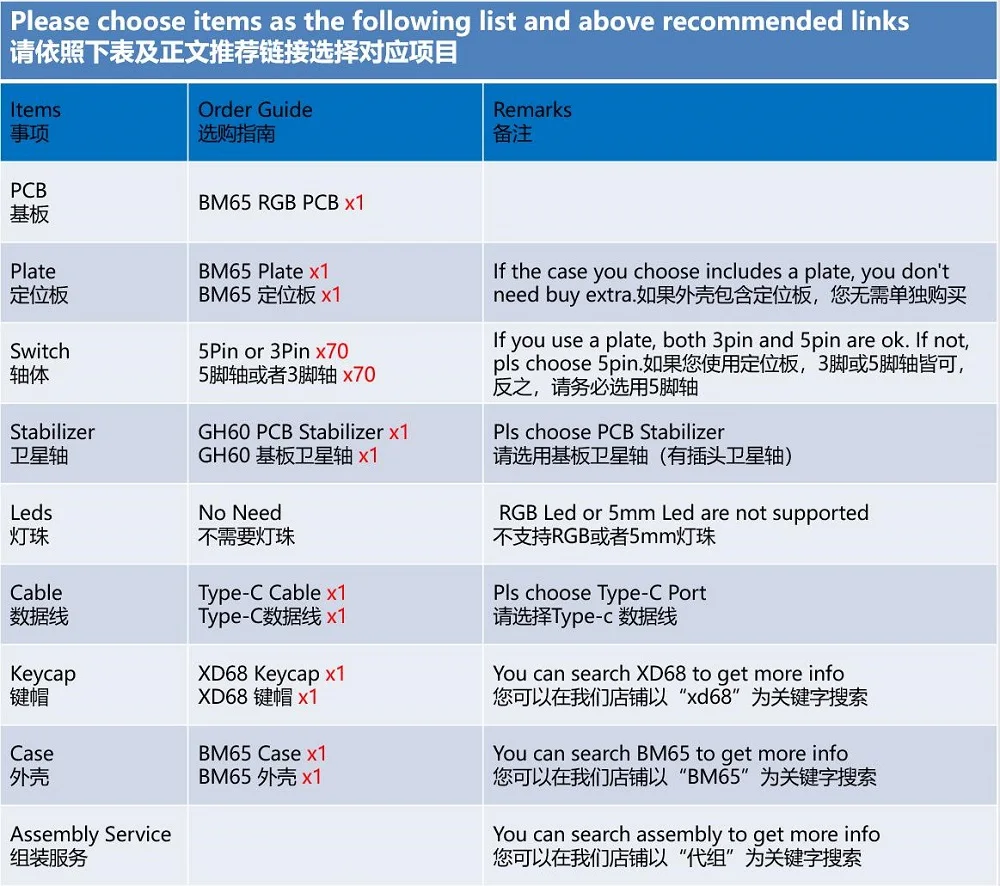Kit 10: PCB BM65 + caja de plástico blanca + placa BM65 + estabilizador BM65