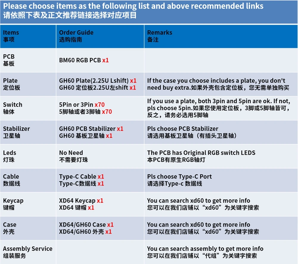 Kit 8: PCB BM60 ISO RGB + estabilizadores BM60 + placa de aluminio 2.25u Lshift + caja de plástico negro(Si no desea una funda negra, cuando envíe su pedido, marque el color de Claro/blanco en su pedido)+ 70 Interruptores amarillos estándar Gateron(Si necesita otro interruptor estándar Gateron 【Gateron transparente/azul/verde/amarillo/rojo/marrón/negro con 3 pines o 5 pines SMD】, cuando envíe el pedido, deje un mensaje en su comentario de pedido)