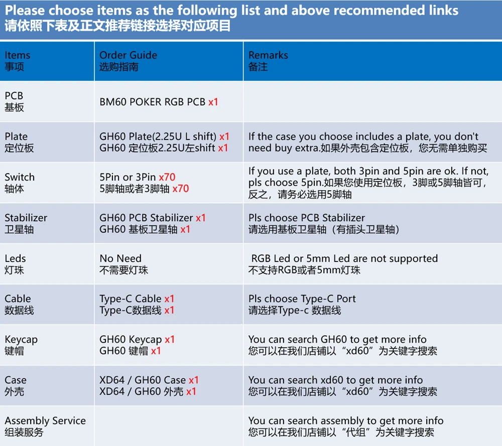 Kit8:BM60 Poker RGB PCB + BM60 Estabilizadores + 2.25u Lshift Alu Plate + Black Plastic Case(Si no desea una funda negra, cuando envíe su pedido, marque el color de Claro/blanco en su pedido)+ 70 Interruptores amarillos estándar Gateron(Si necesita otro interruptor estándar Gateron 【Gateron transparente/azul/verde/amarillo/rojo/marrón/negro con 3 pines o 5 pines SMD】, cuando envíe el pedido, deje un mensaje en su comentario de pedido)