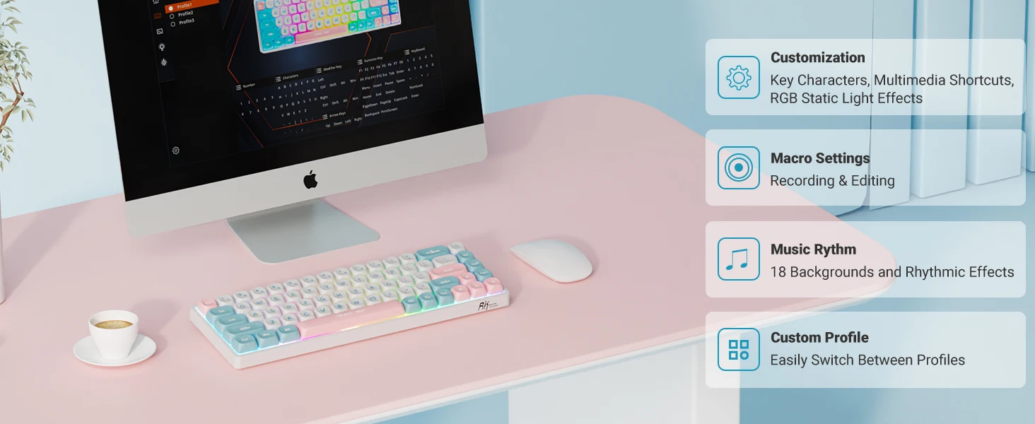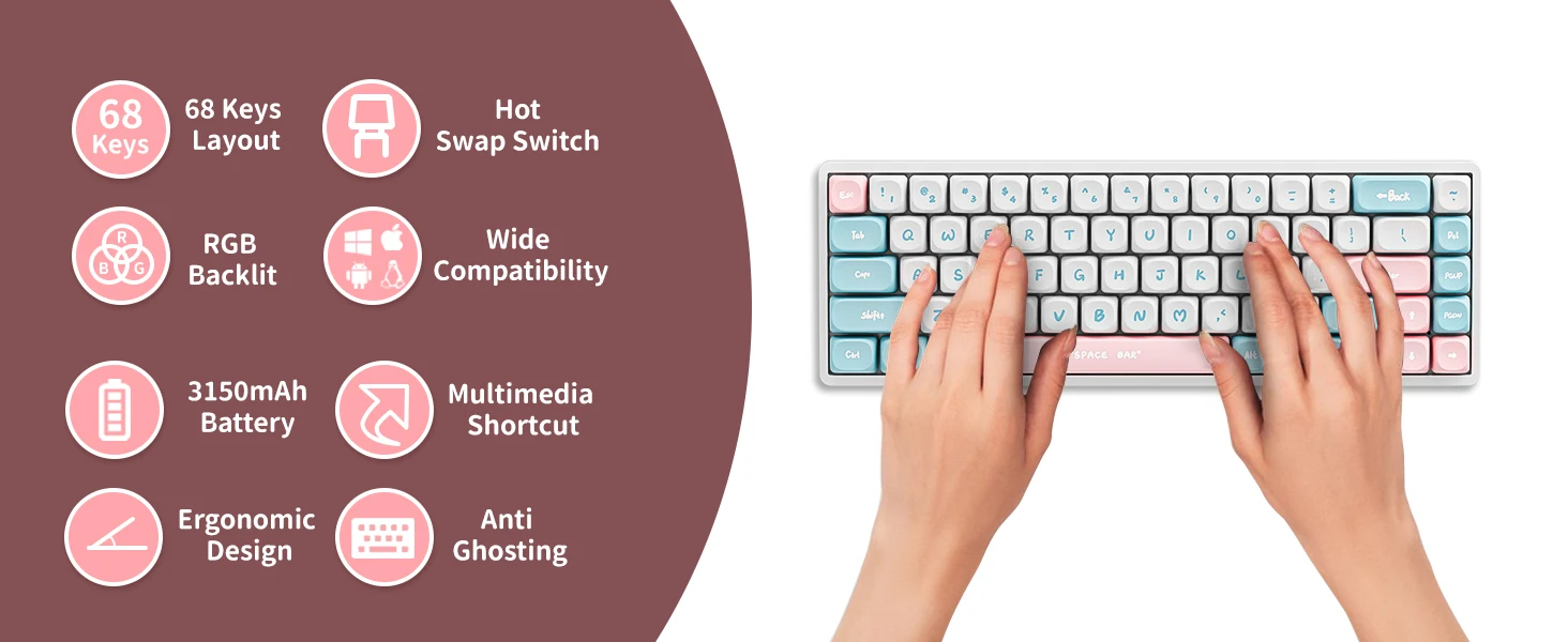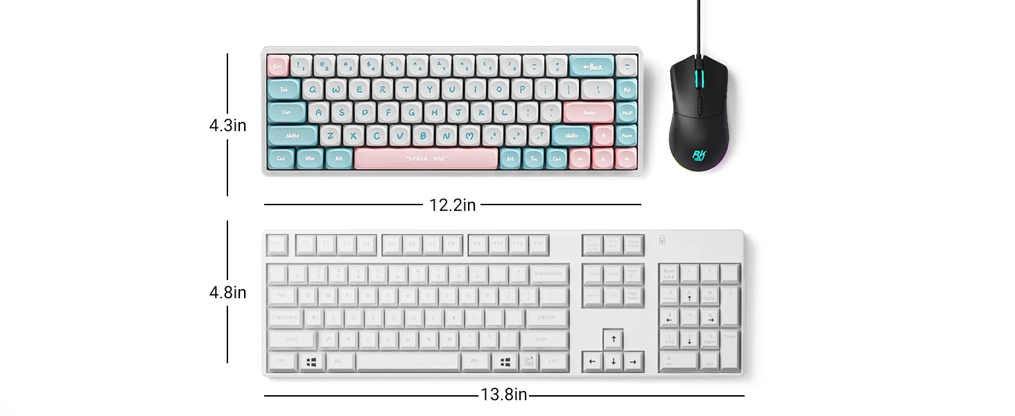 2,68 teclas, redefinir TKL- El innovador diseño único del 65% se diferencia de los teclados TKL tradicionales, que cortan más espacios torpes y al mismo tiempo admiten la misma funcionalidad que las prácticas teclas de flecha, multimedia y control.
