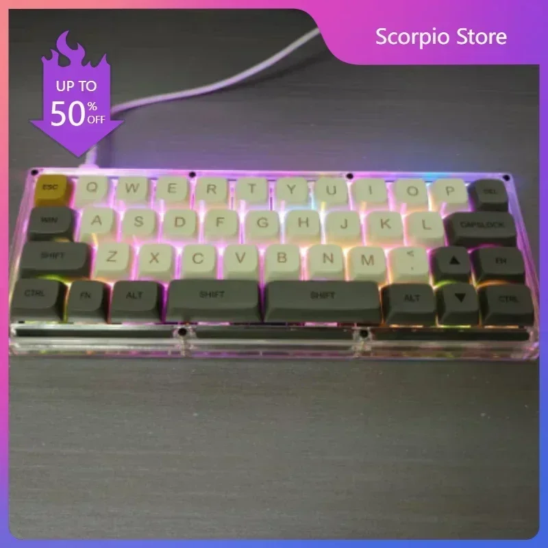 Comprar Teclado mecánico RS40 40%, carcasa acrílica transparente, Mini Kit DIY intercambiable en caliente, Vial programable RGB, enchufe caliente, tecla PCB