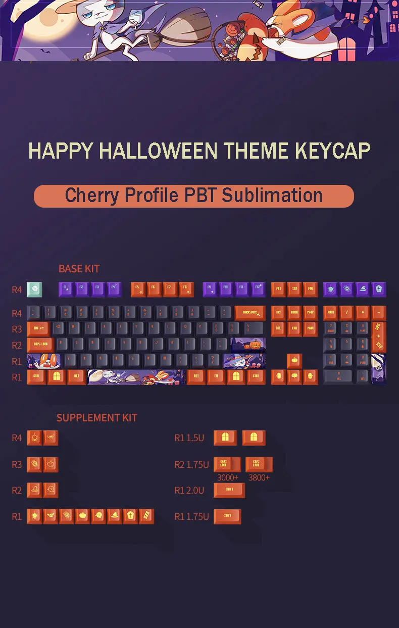 Comprar Teclado mecánico de sublimación PBT, tapa de tecla con temática de Halloween OEM/Cherry Profile