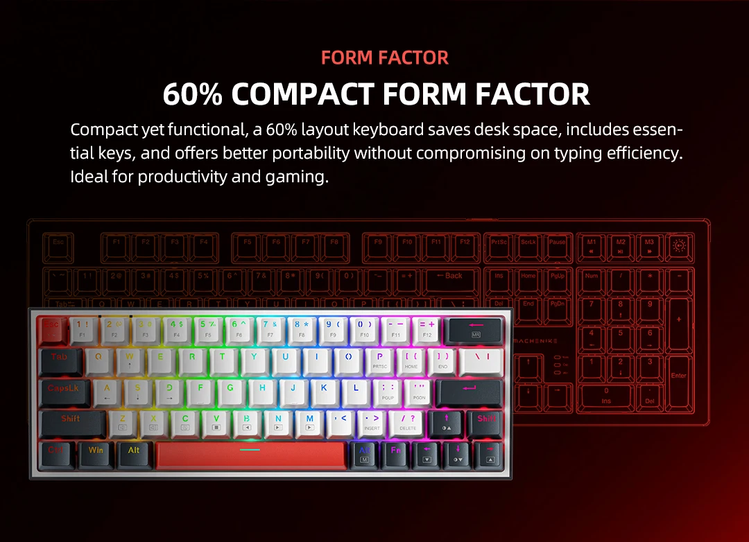 * Tamaño: 60% Factor de forma con teclas de flecha