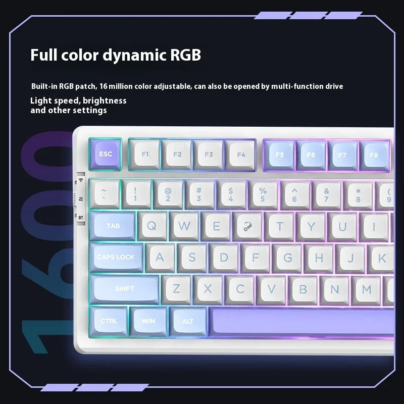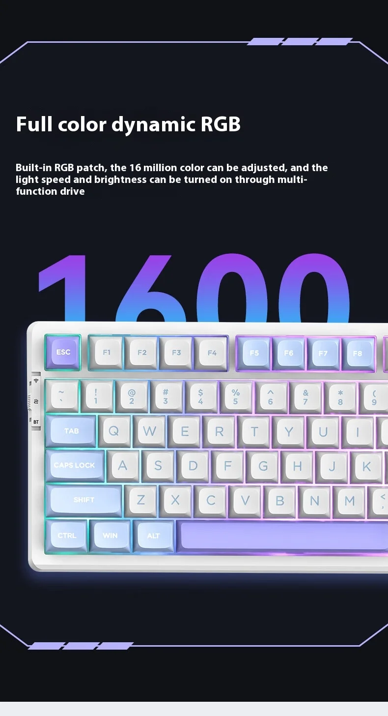 ✨ Teclas PBT y arte RGB dinámico Las teclas PBT texturizadas resisten el brillo y la acumulación de aceite durante las carreras de codificación de 12 horas 46, mientras que la retroiluminación RGB orientada al sur proyecta un efecto de gradiente de "ondas del océano" en todas las teclas de perfil MDA, personalizables mediante software para sincronización pulsante en el juego o retroiluminación blanca minimalista59.