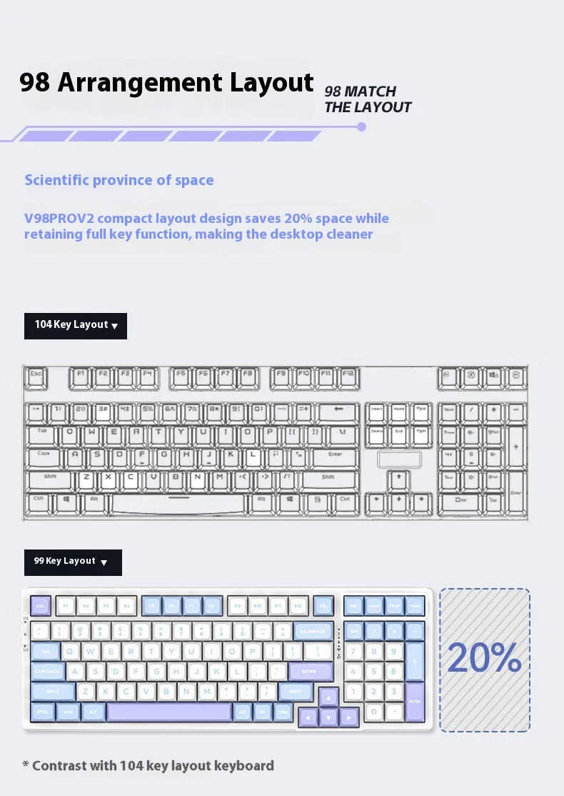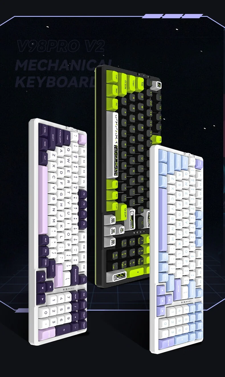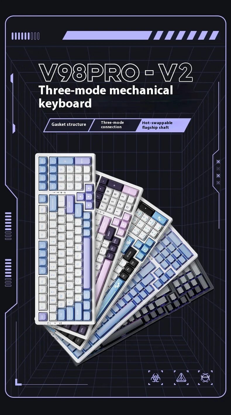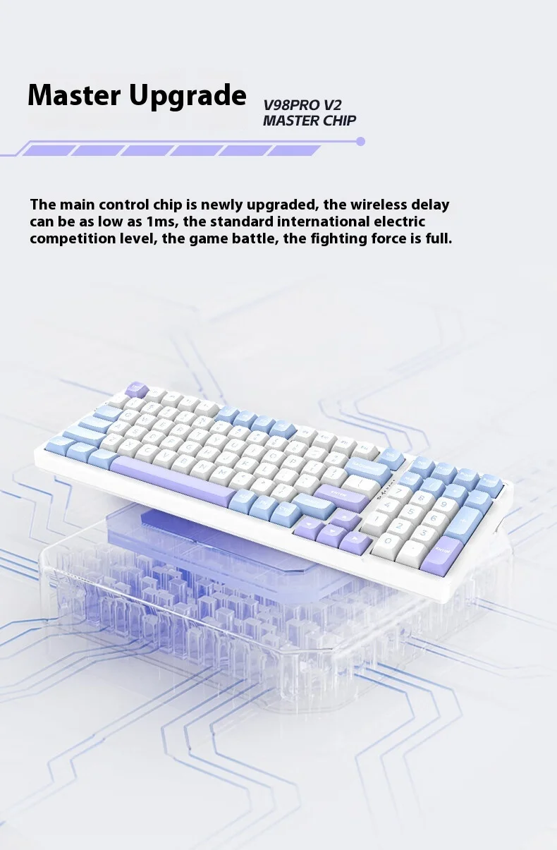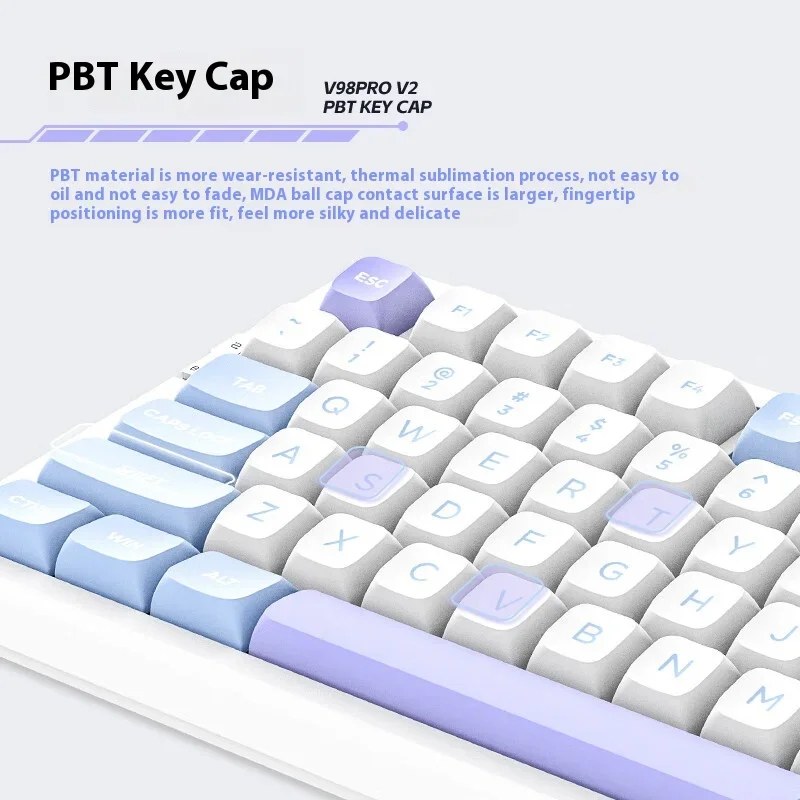 Teclado mecánico VGN V98PRO V2 de modo Triple, ordenador con impresión lateral de 99 teclas intercambiables en caliente para sistemas múltiples compatibles con Windows