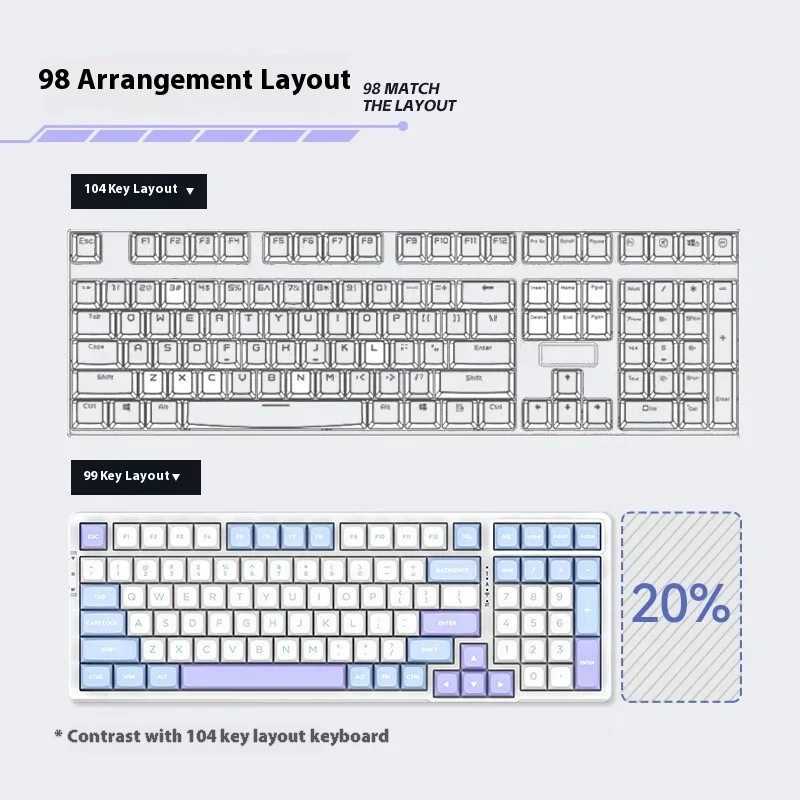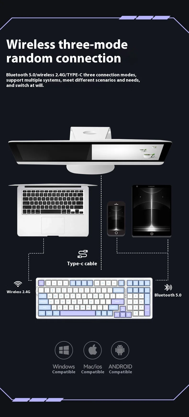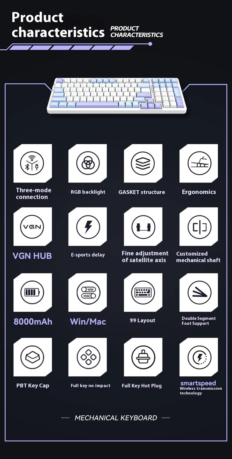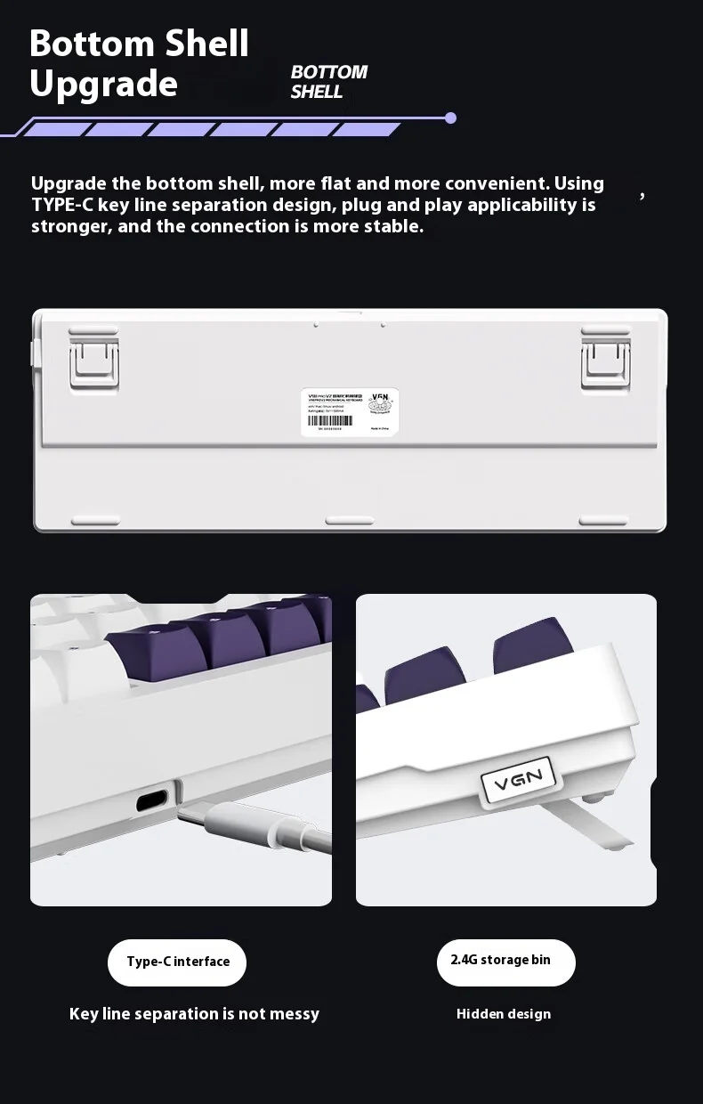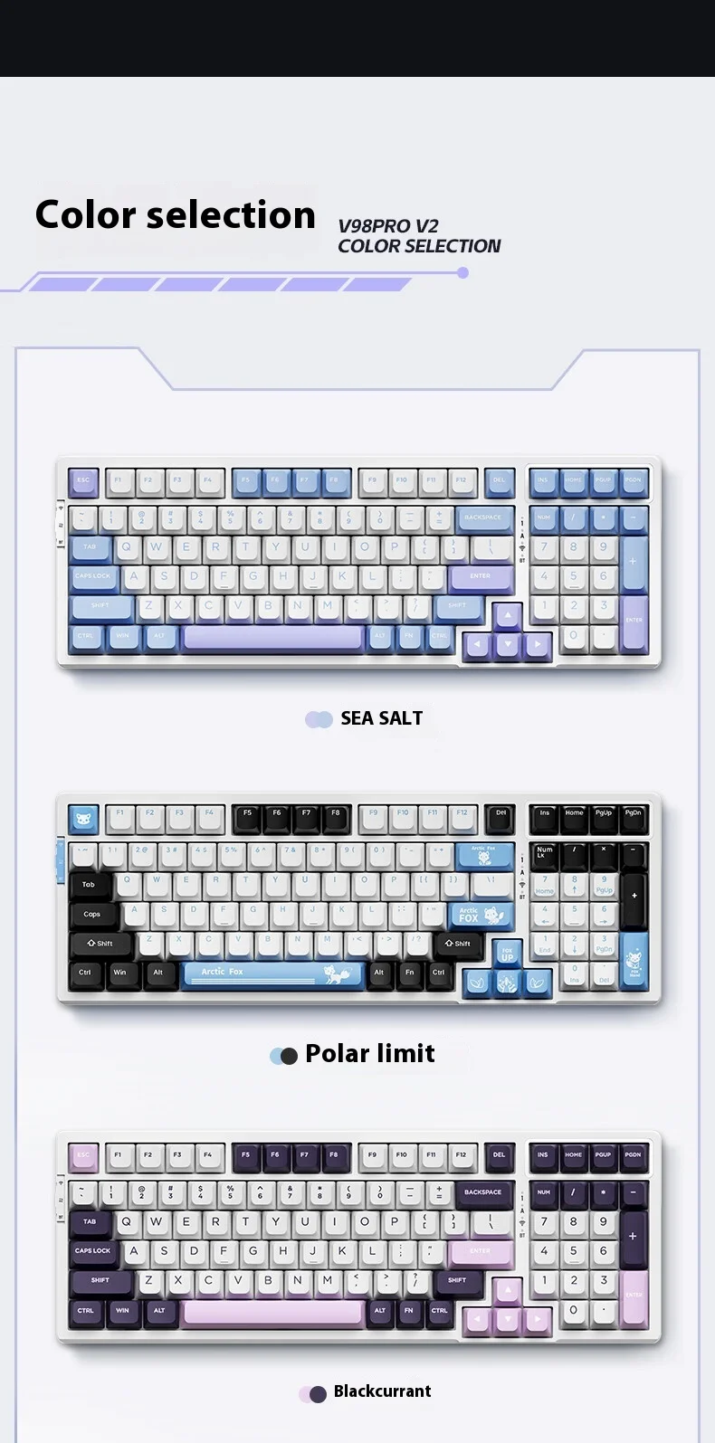Teclado mecánico VGN V98PRO V2 de modo Triple, ordenador con impresión lateral de 99 teclas intercambiables en caliente para sistemas múltiples compatibles con Windows