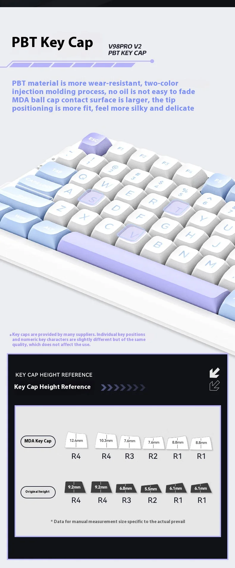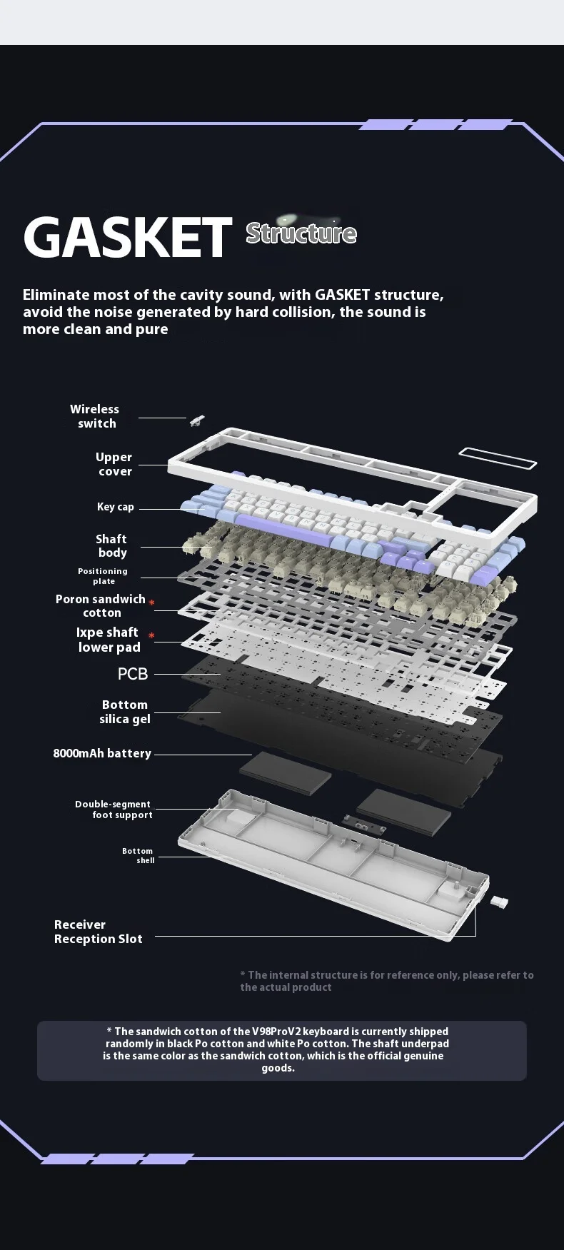 Teclado mecánico triodo VGN V98PRO V2 – Ocean Breeze Edition con interruptores Crystal Wine Red ⌨️ Precisión y rendimiento silencioso fabricado con juntas Diseñado con una estructura amortiguada multicapa46, este teclado ofrece una acústica de "tapa de mármol" similar al mismo tiempo que mantiene la capacidad de respuesta de nivel de torneo.Los interruptores Crystal Wine Red ofrecen una activación ultrarrápida de 0,2 mm para el dominio de FPS/MOBA, combinados con estabilizadores amortiguados con silicona para reducir el ruido de pulsación de tecla en un 60% 45, ideales para carreras nocturnas o flujos de trabajo de oficinas abiertas.