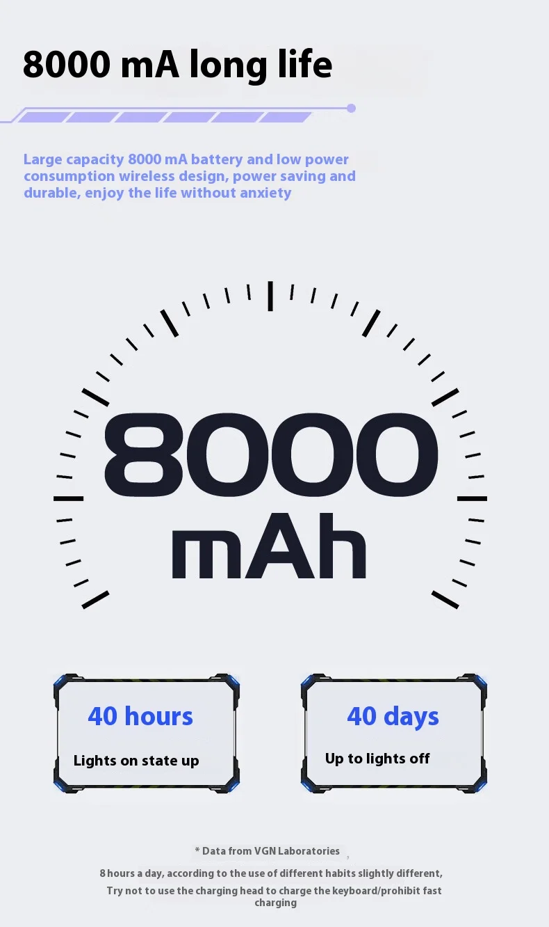 ⚡ Batería Maratón de 8000 mAh y libertad intercambiable en caliente Juega o trabaja durante más de 40 horas con RGB lueur45, o cambia al modo sigiloso para semanas de uso ininterrumpido.Los enchufes universales de intercambio en caliente permiten una actualización sin esfuerzo de 体 de intercambio a retroalimentación táctil de "mahjong-tile" o acción lineal mantecosa en segundos46.
