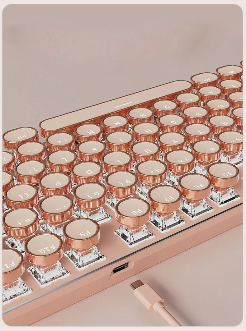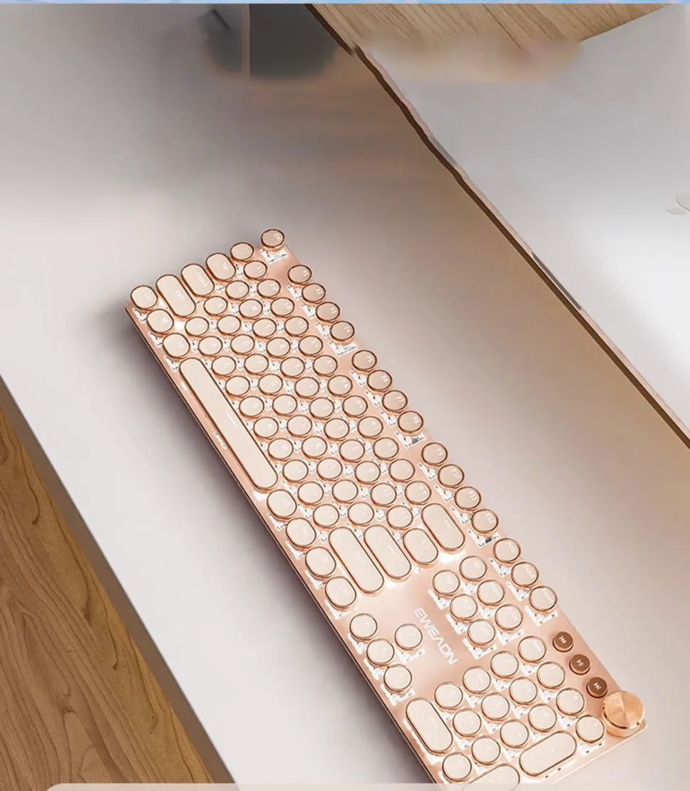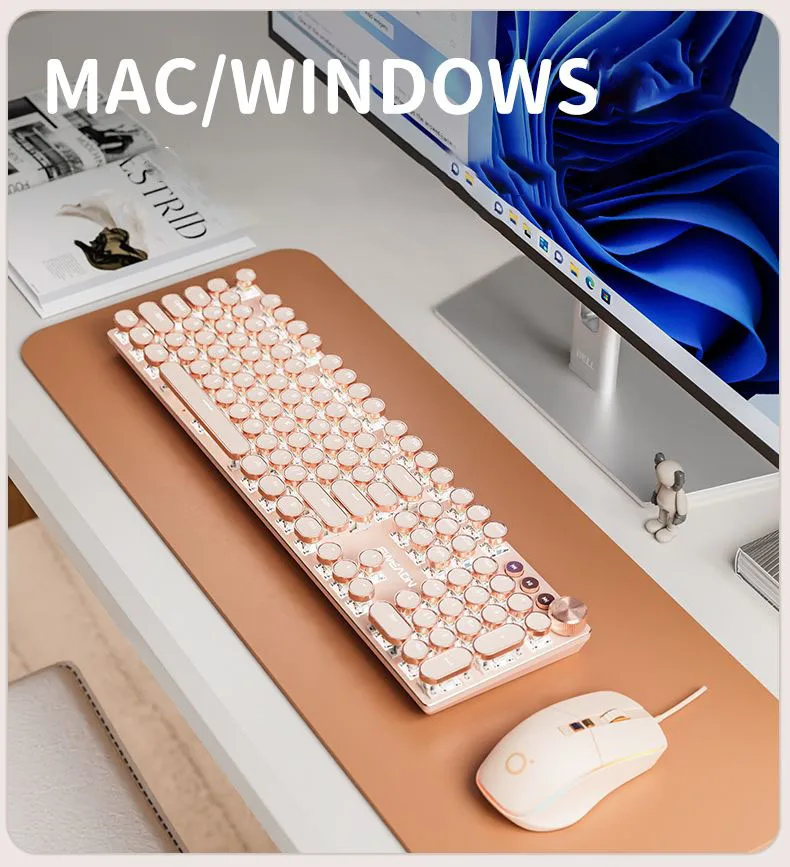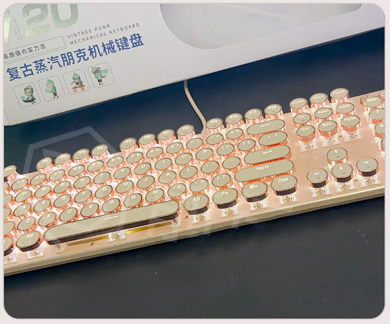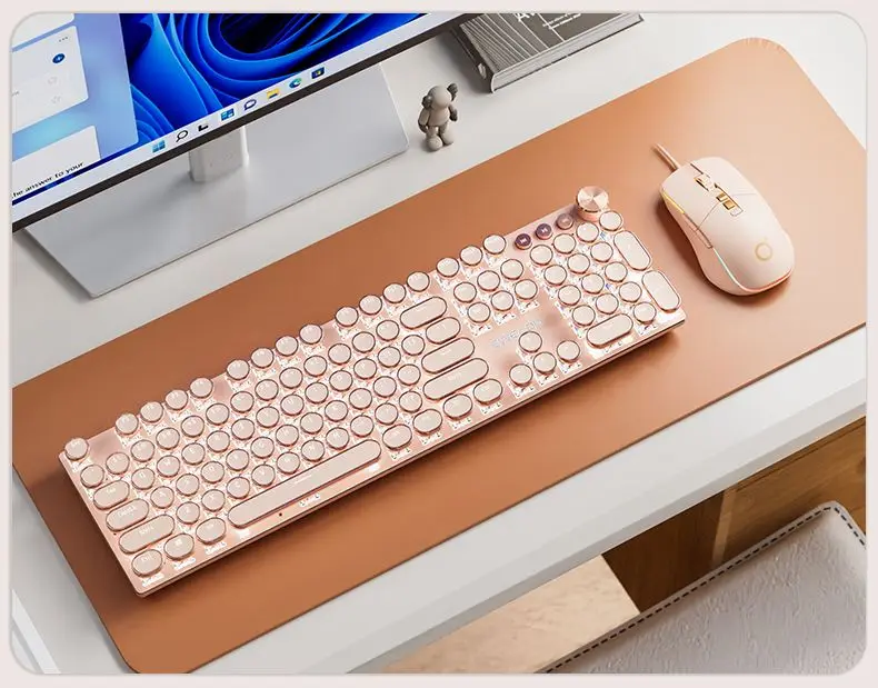 Teclado mecánico Vintage Punk para mujer, 104 teclas, juego de ratón de ordenador de oficina, colorido Backilight tipo C, con cable rosa