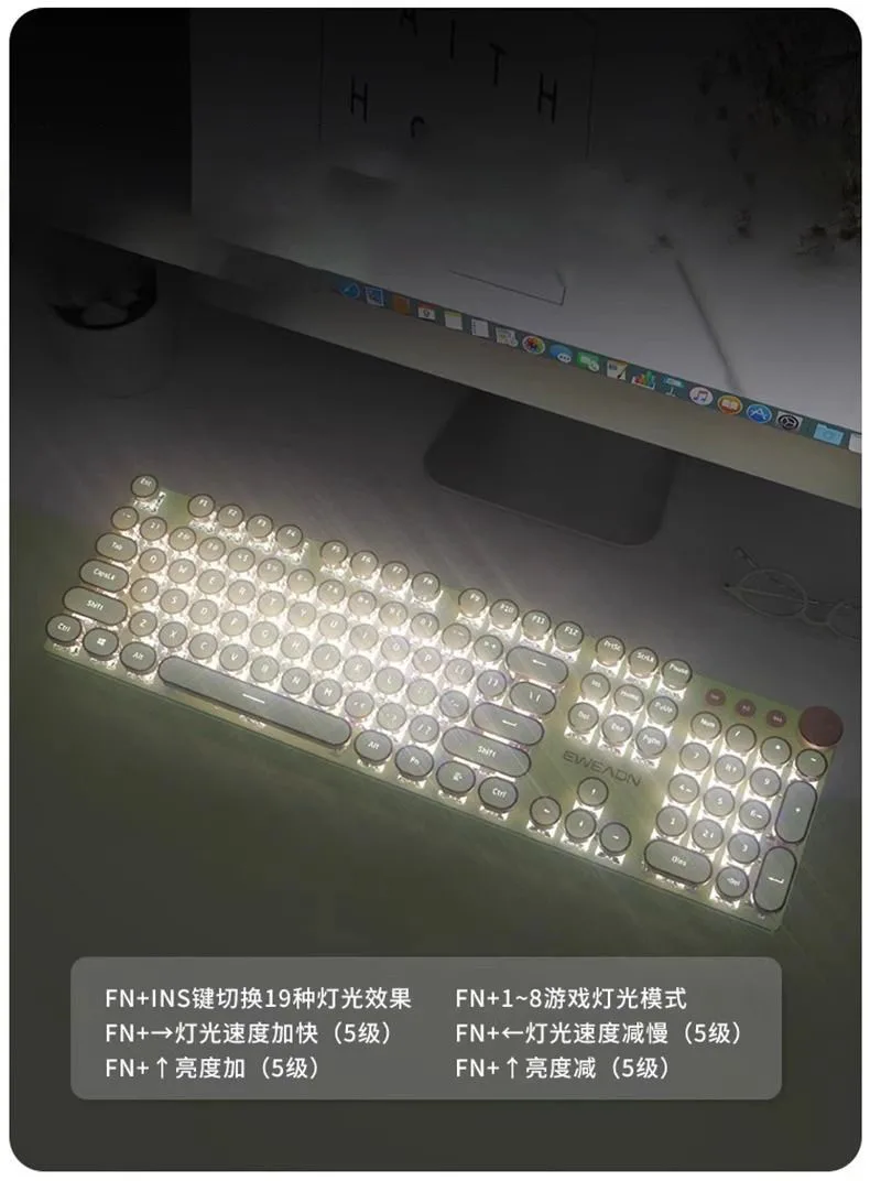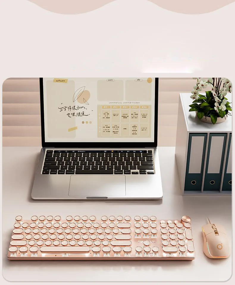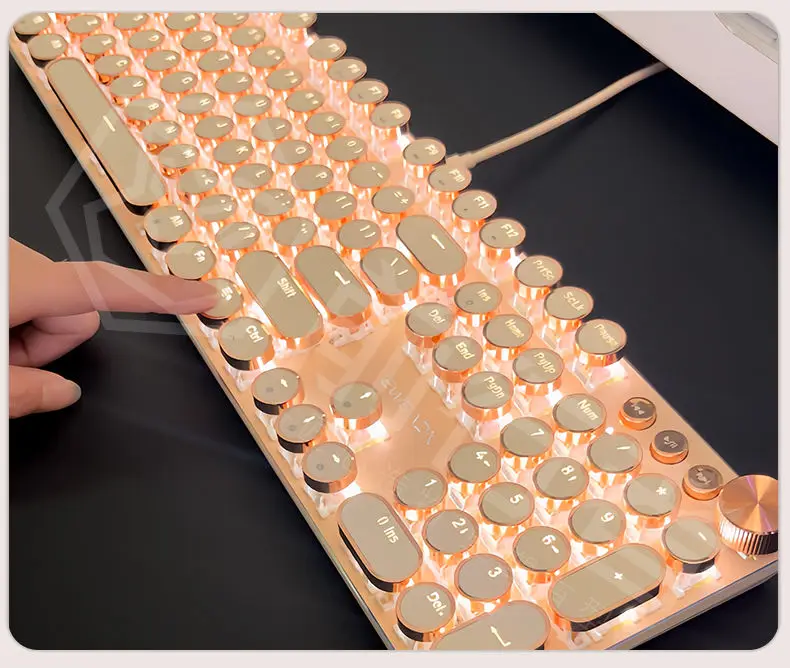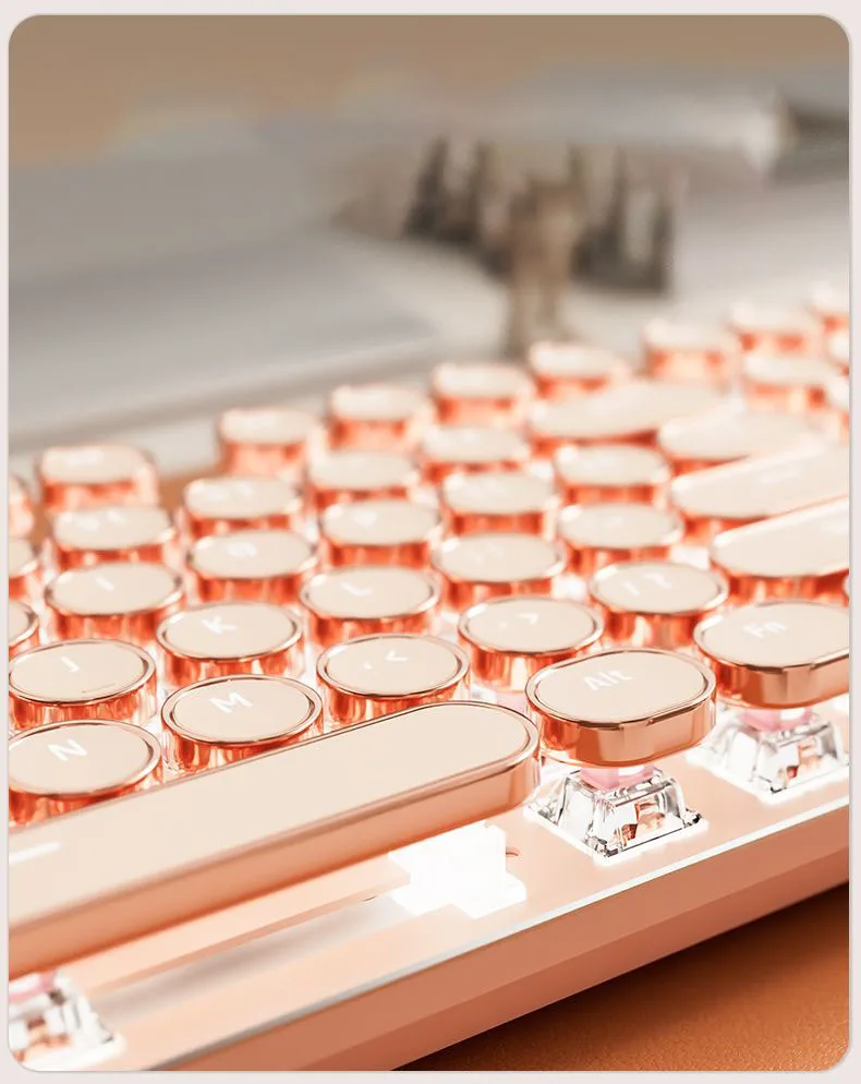 Teclado mecánico Vintage Punk para mujer, 104 teclas, juego de ratón de ordenador de oficina, colorido Backilight tipo C, con cable rosa