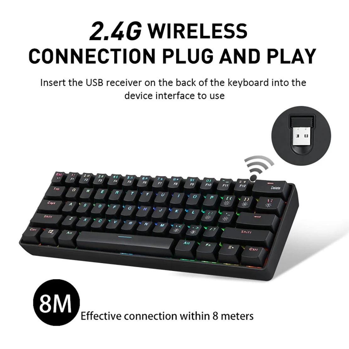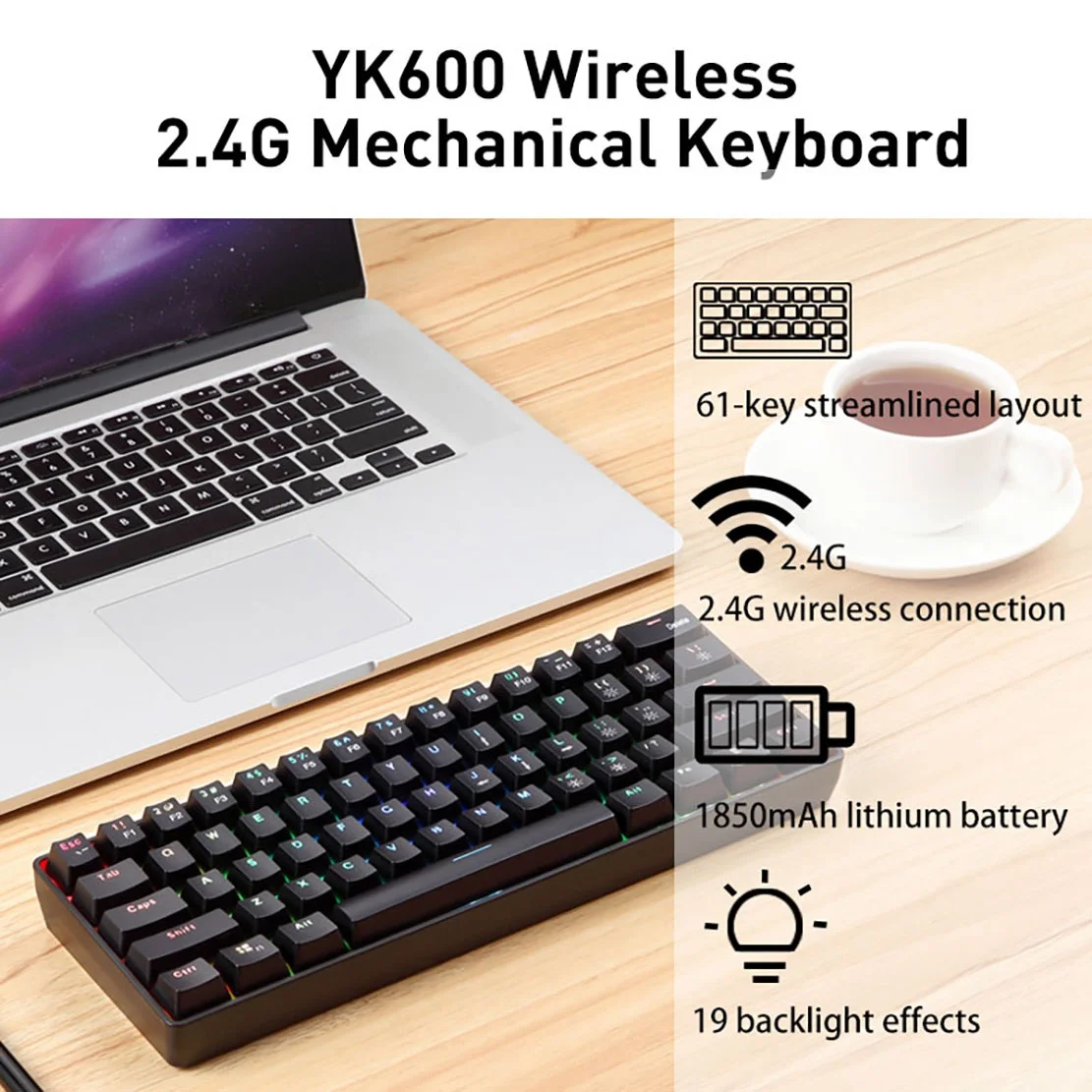 Comprar Teclado mecánico YK600 61 teclas RGB retroiluminación 2,4G + modo dual con cable 60% teclado mecánico compacto (ruso