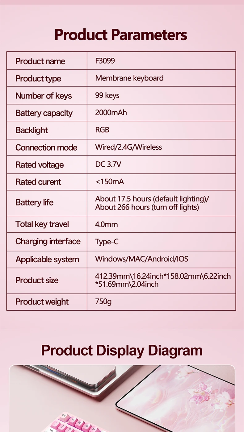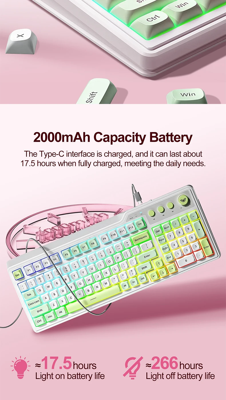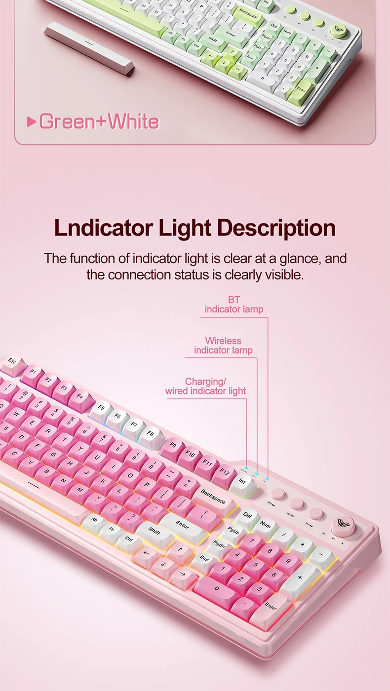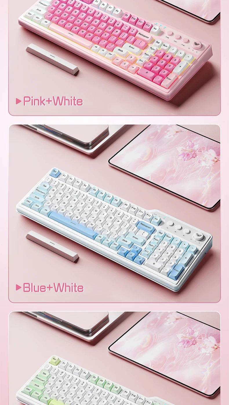 Teclado de membrana AULA F3099, luz retroiluminada RGB de 99 teclas, teclado para juegos de tres modos, sonido de tecla suave, teclado de oficina con botón giratorio