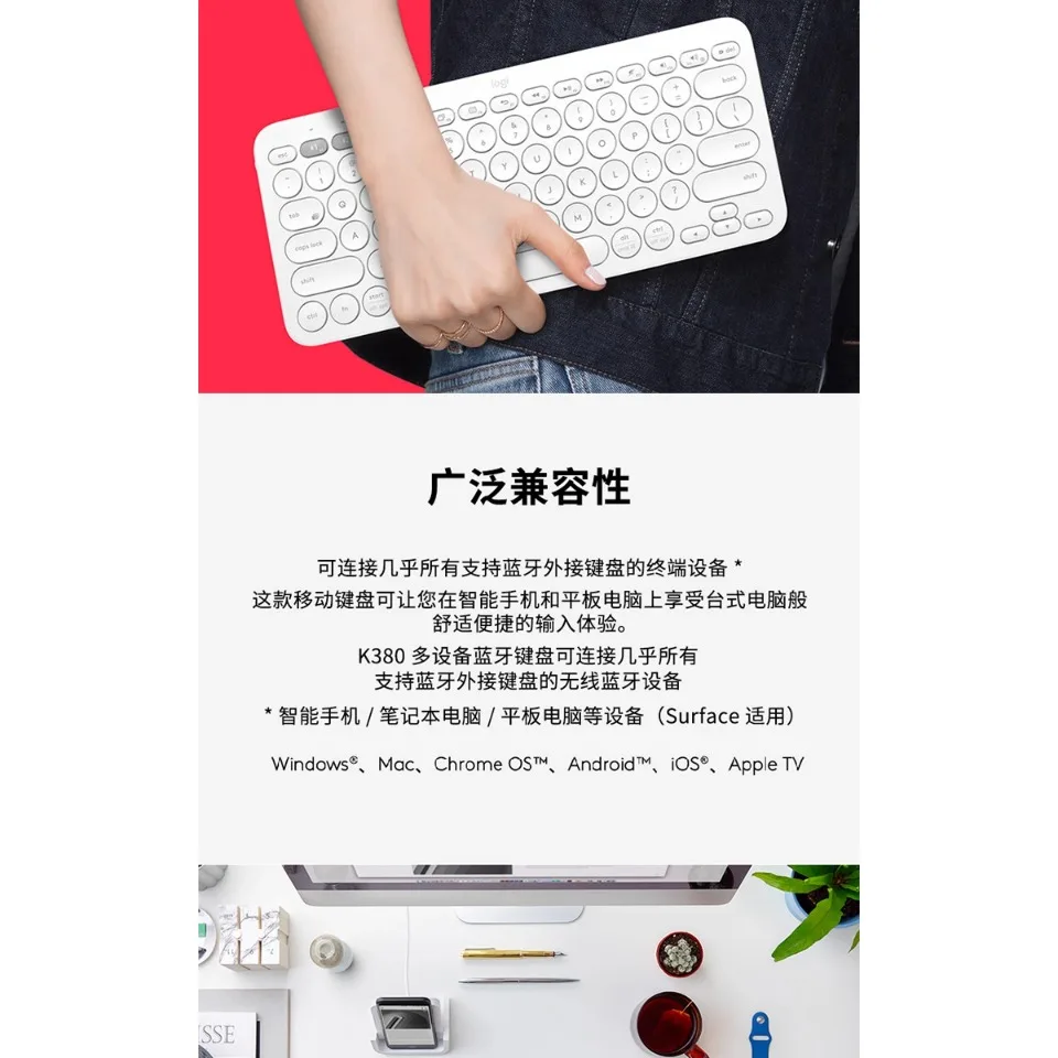 Teclado de membrana inalámbrico Bluetooth multifuncional K380, teclado portátil ultrafino con personalización de oficina para juegos diarios para regalo
