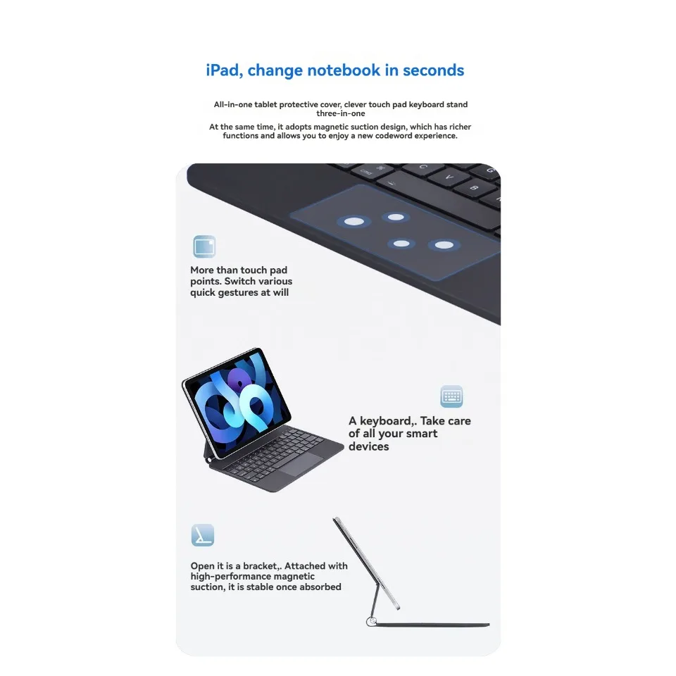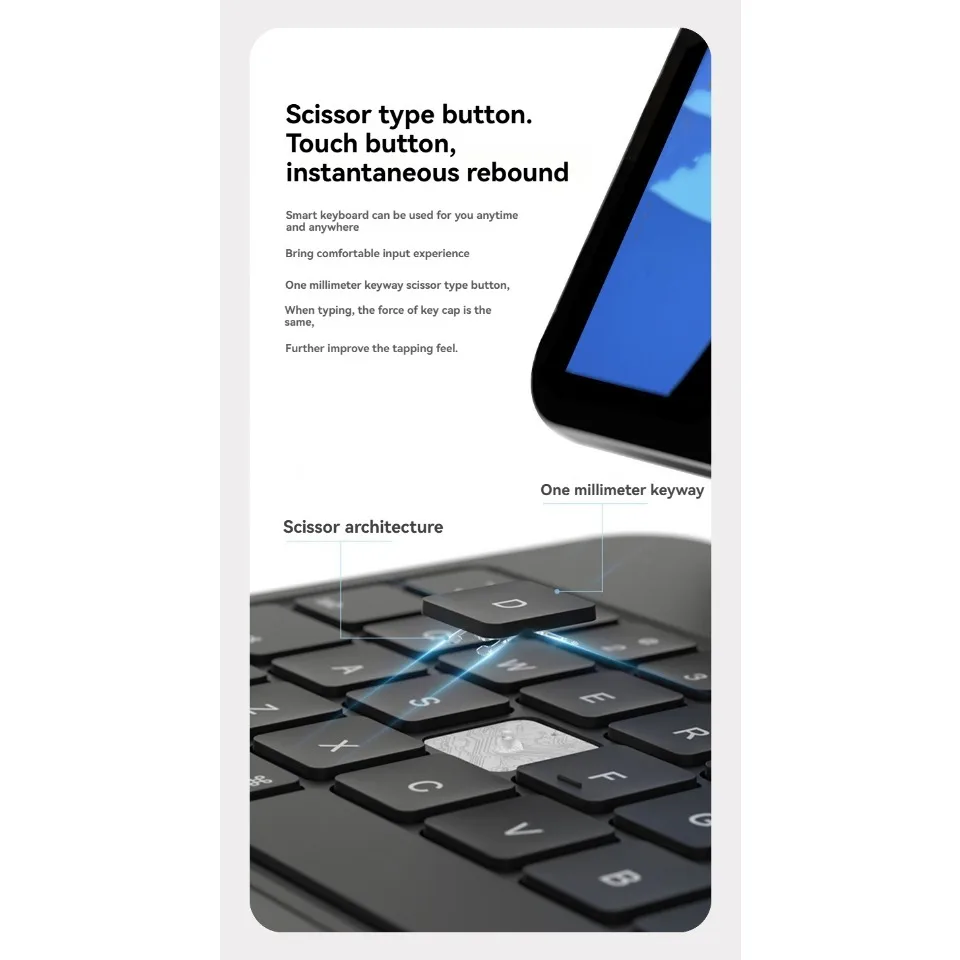 1.Configuración de oficina tres en uno, funda protectora integrada para tableta, que combina inteligentemente panel táctil, teclado y soporte, al tiempo que adopta un diseño magnético para funciones más ricas, lo que le permite disfrutar de una nueva experiencia de escritura de códigos.