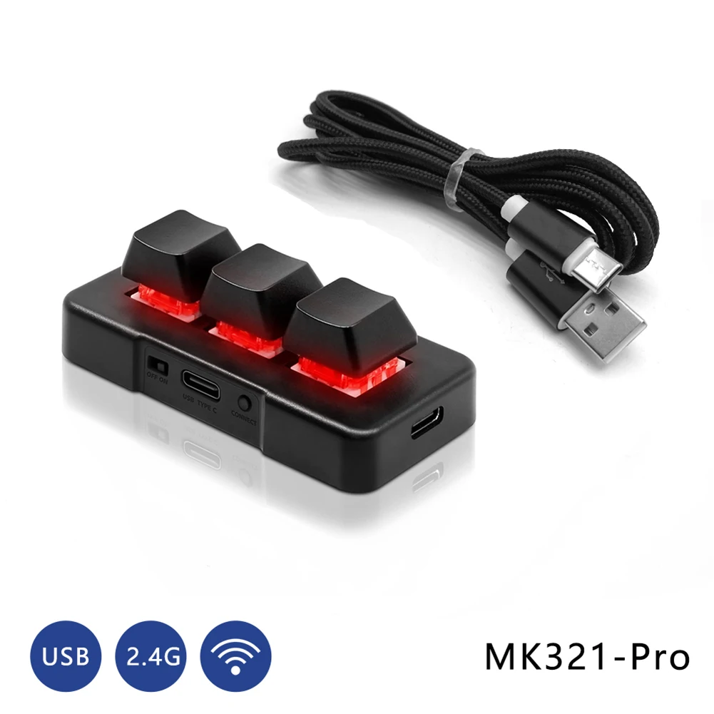 Comprar Teclado MK321-Pro personalizado con luz RGB mecánica, 3 modos, USB + 2,4G, inalámbrico, conexión Bluetooth, para juegos de oficina