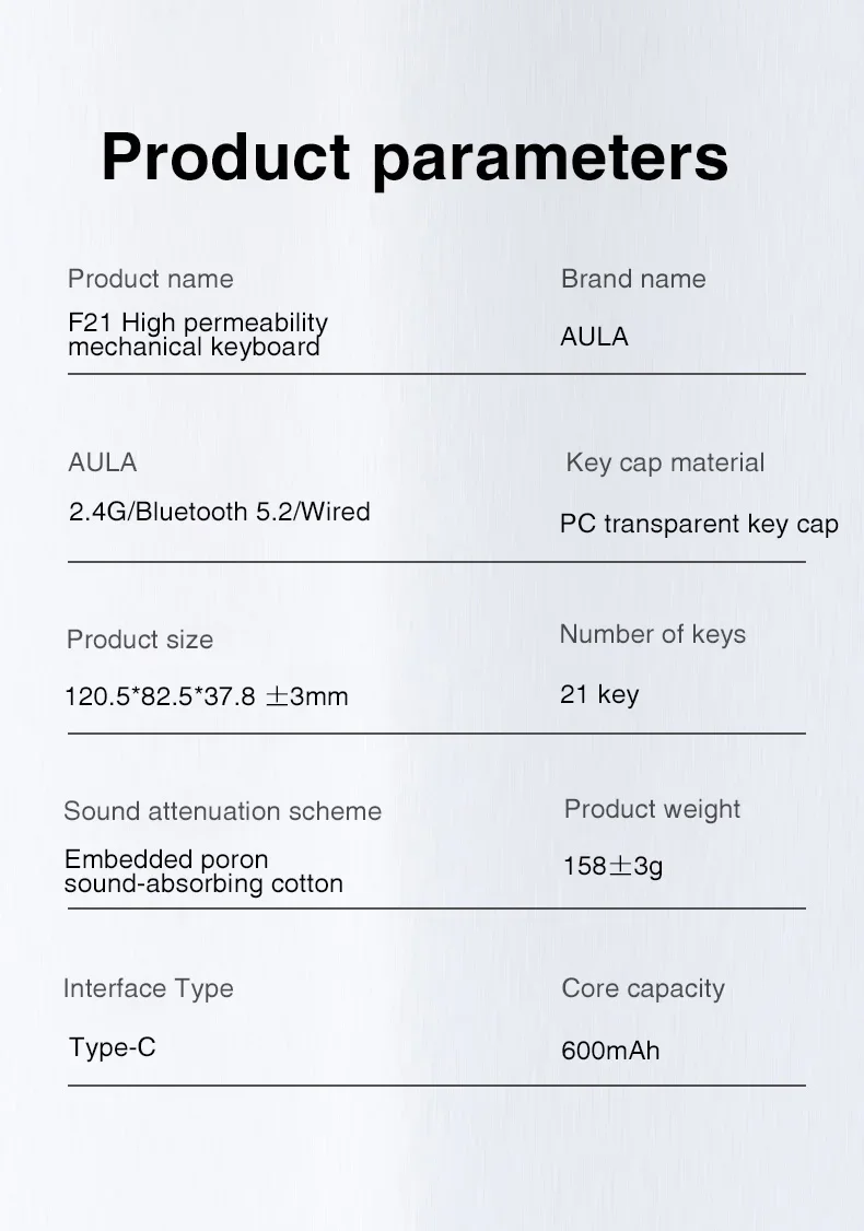 Diseño de estructura con cancelación de ruido, algodón sándwich incorporado, reduce el ruido de la cavidad del teclado numérico, el tono de la tecla del teclado es nítido y cómodo al tacto. Compatible con múltiples sistemas para Apple/win/android. Prepárate para mejorar tu productividad con este teclado numérico mecánico inalámbrico AULA con 21 teclas de función. Es más que un simple teclado, es una pieza de tecnología única y elegante que te hará la vida más fácil.