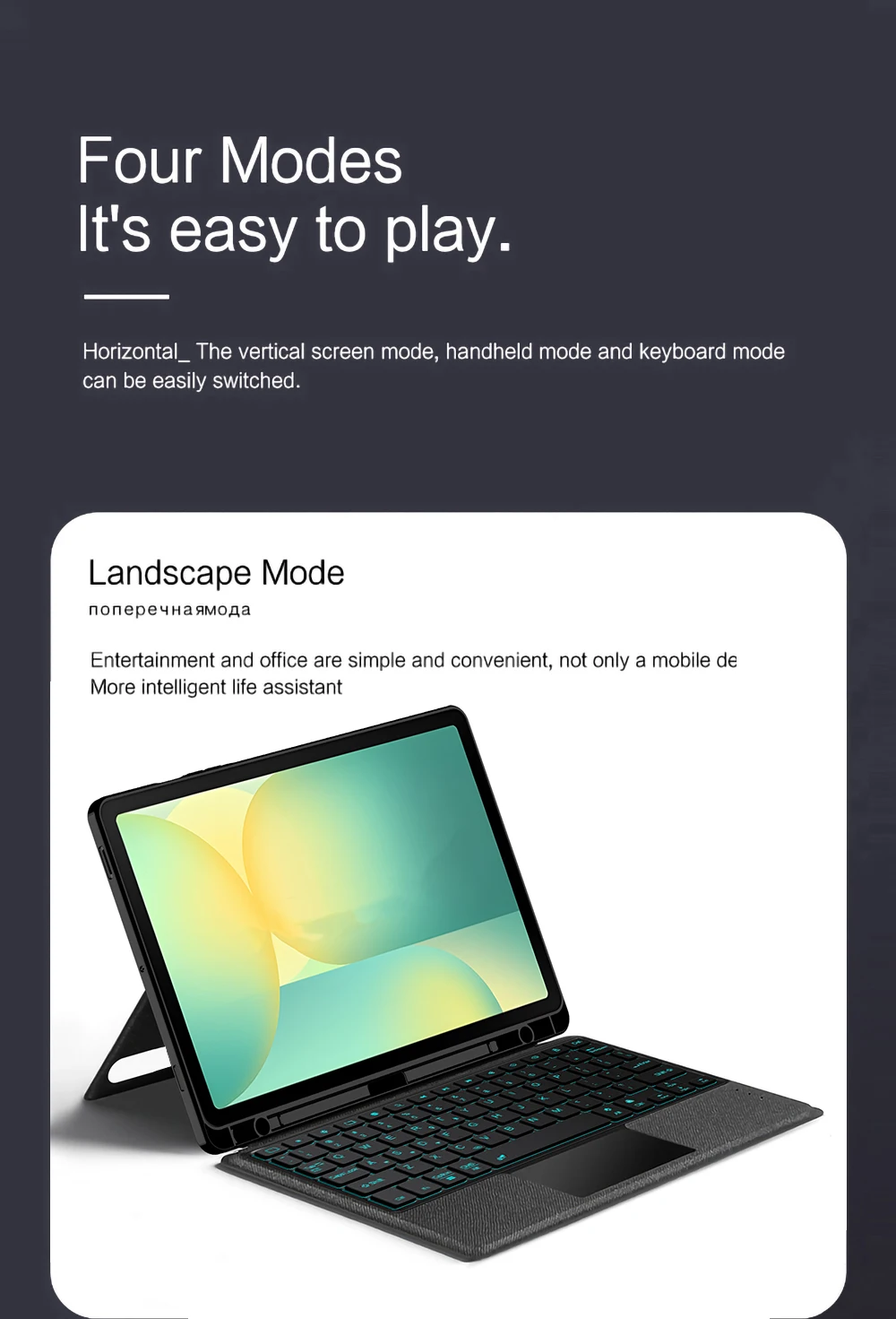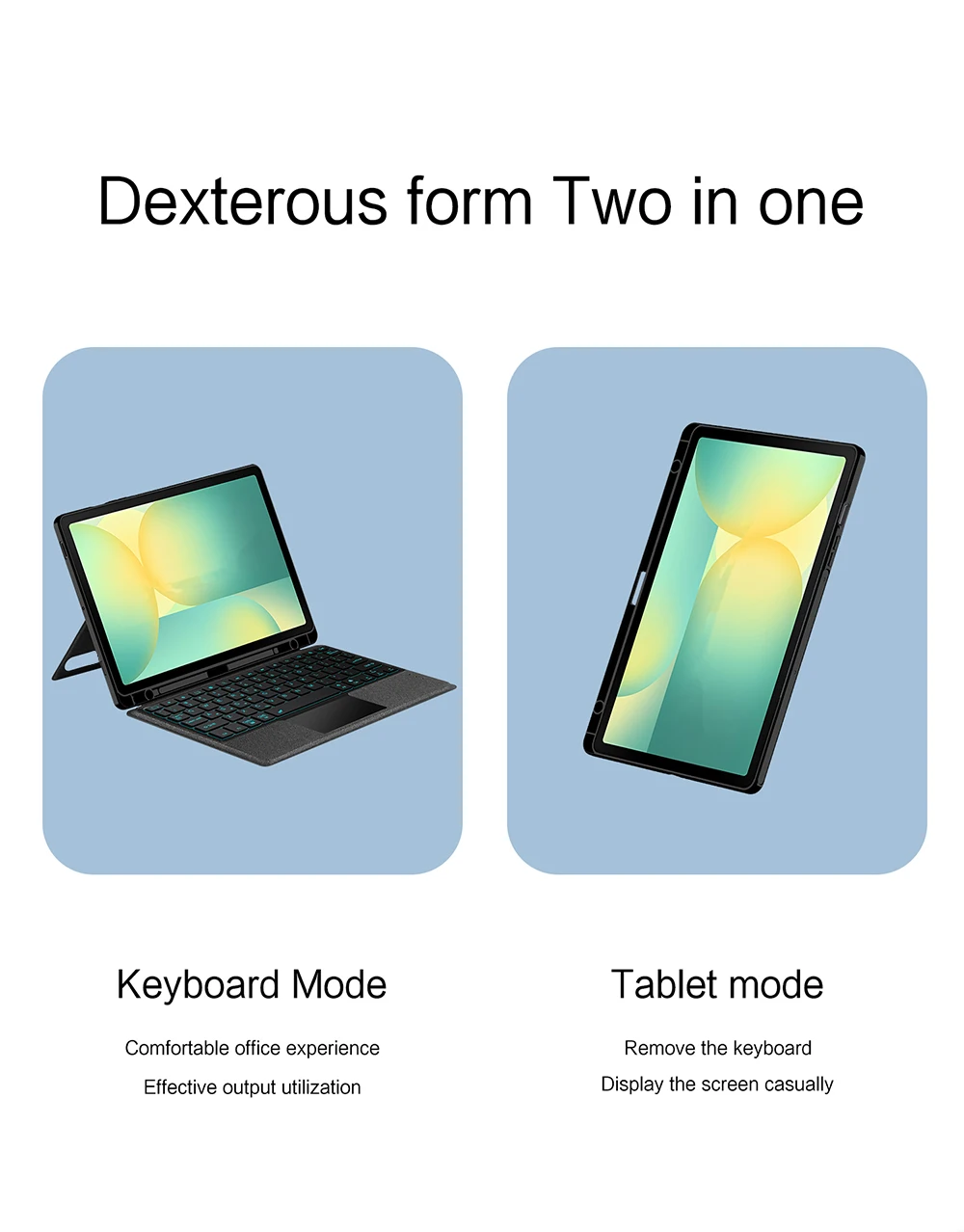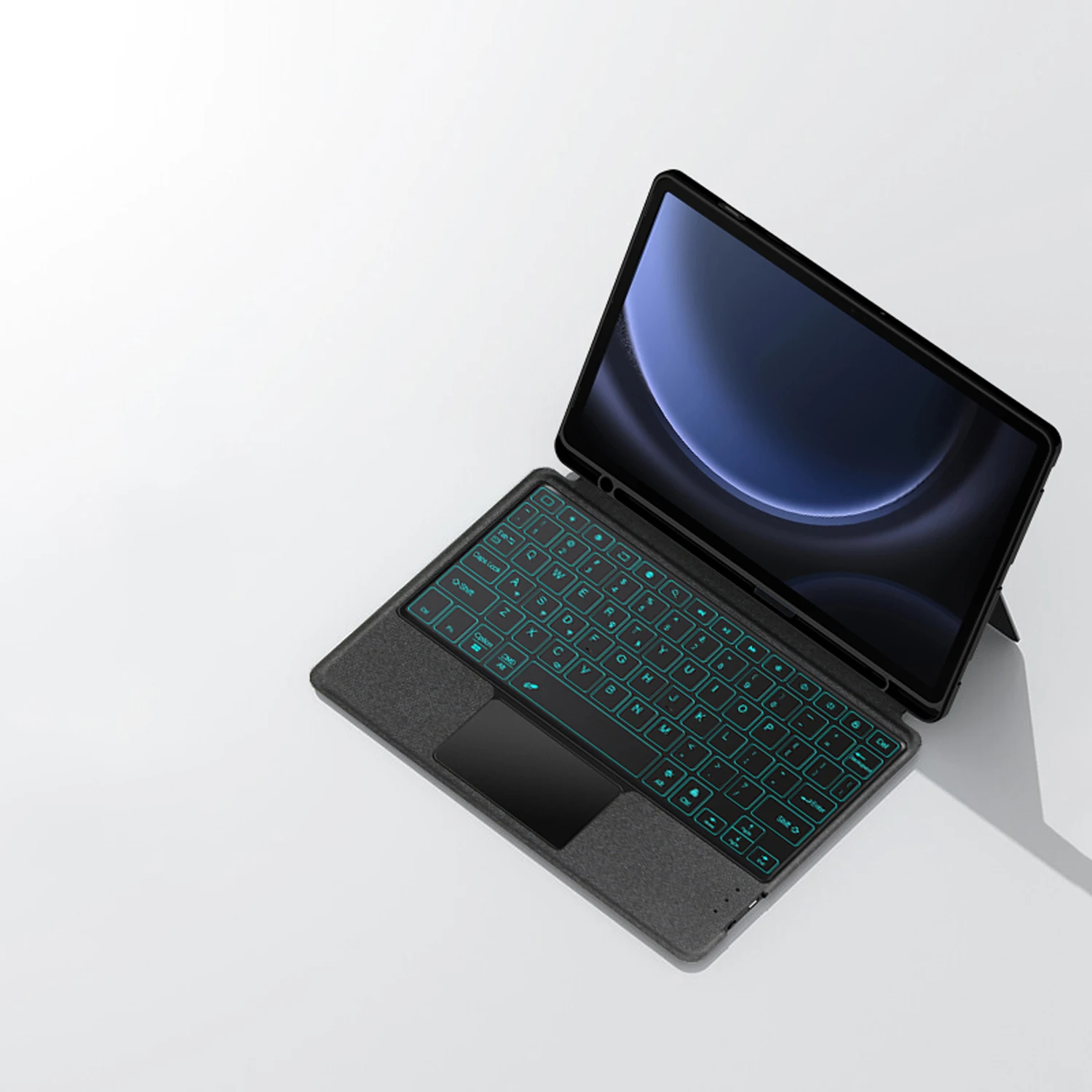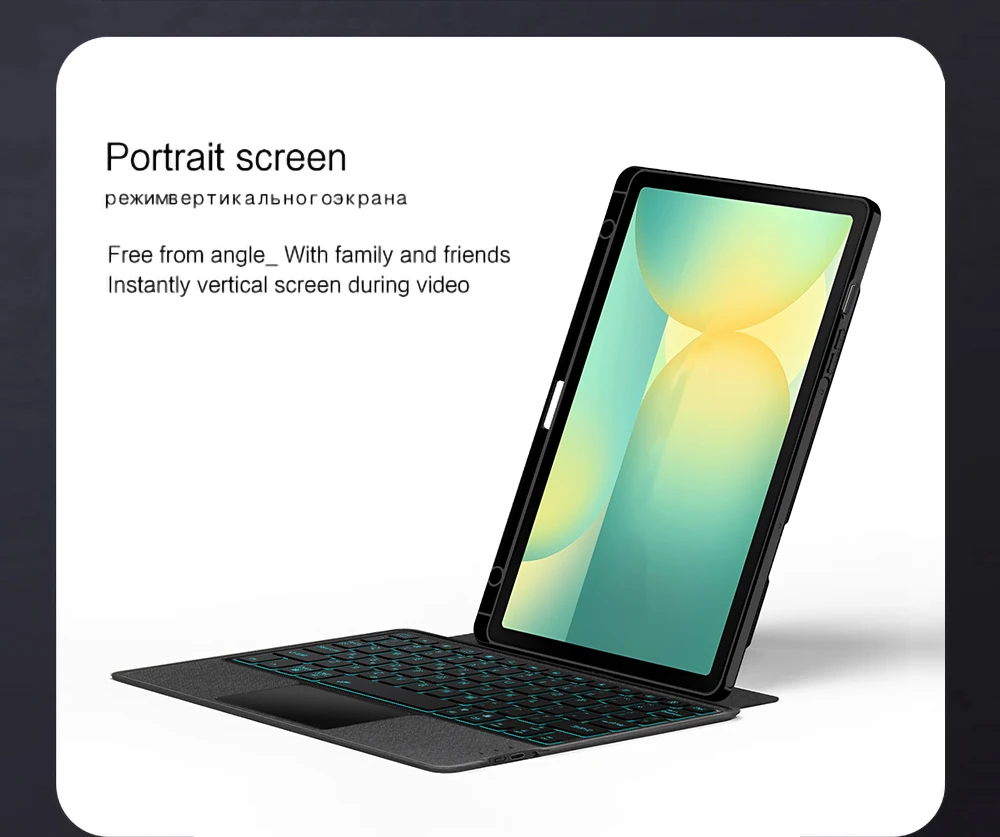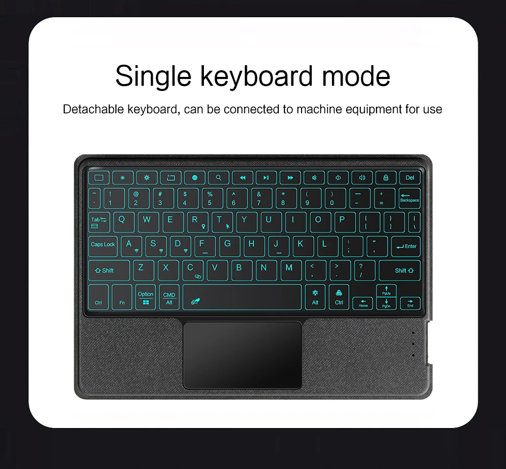 Esta es una funda para teclado desmontable, funda protectora de TPU suave, que puede proteger eficazmente su tableta.El teclado y la funda protectora se pueden separar. Teclado con retroiluminación y TouchPad.