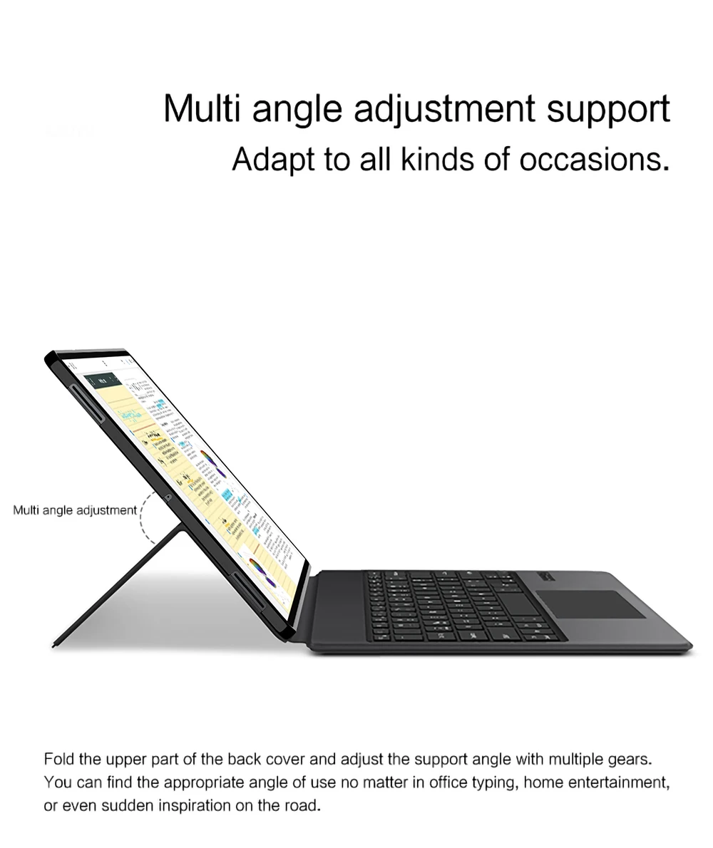 Un producto, usos dobles, cuando está desplegado, es un teclado para tableta y, cuando está cerrado, es una funda protectora que le permite satisfacer las necesidades de más escenarios.