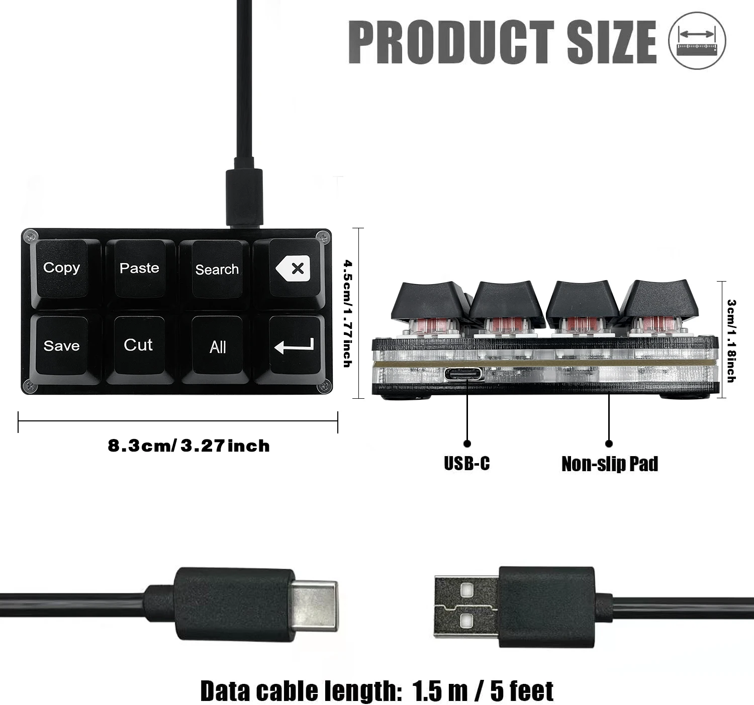 【Función predeterminada】 La función predeterminada de tres teclas es Copiar, Pegar, Buscar, Backspace, Guardar, Cortar, All e Enter (Ctrl+C, Ctrl+V, Ctrl+F, Backspace, Ctrl+S, Ctrl+X, Ctrl +A,Enter).Plug and play,No necesita software.Hace que el flujo de trabajo sea súper rápido.