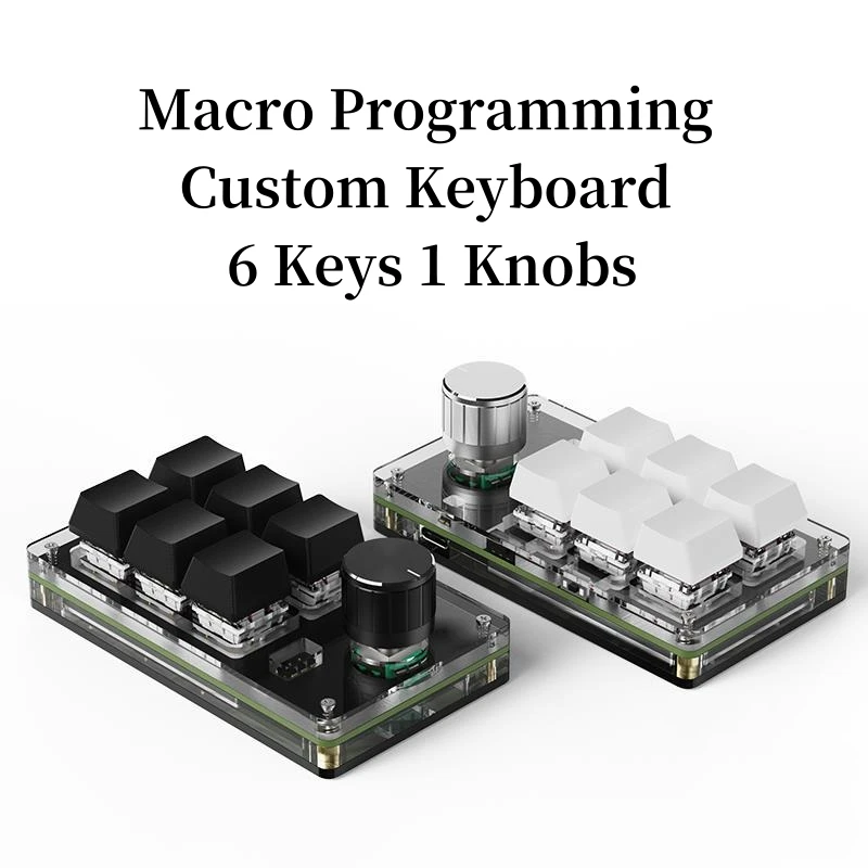 Comprar Teclado personalizado con programación de macros Teclado mecánico de 6 teclas, 1 perilla Teclado para una mano Retroiluminación RGB Atajo de una tecla Copiar Pegar Teclado Windows IOS Tipo C Sin controlador Intercambio