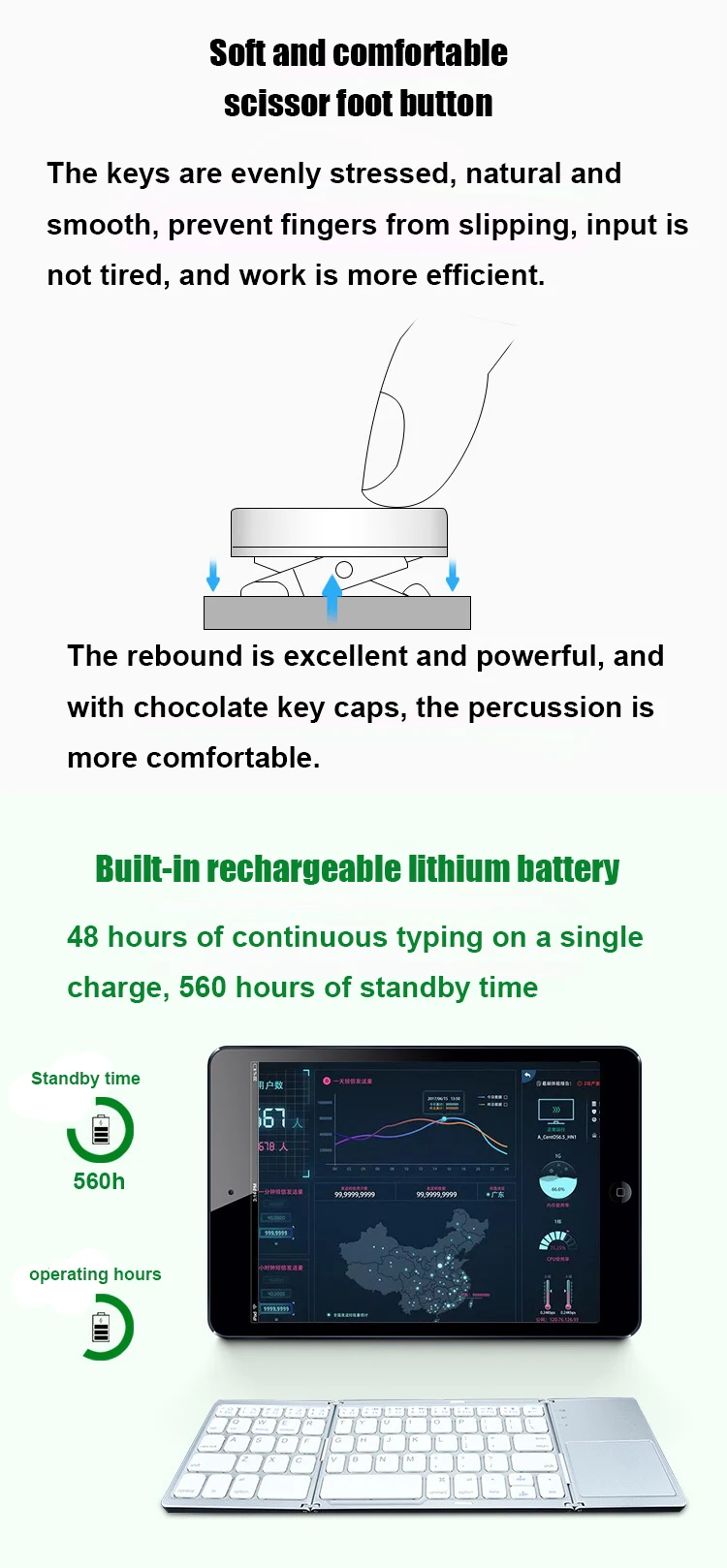 13 funciones de teclas de acceso directo, batería de litio recargable incorporada, se puede utilizar continuamente durante casi 48 horas con una sola carga.