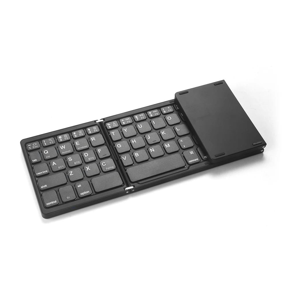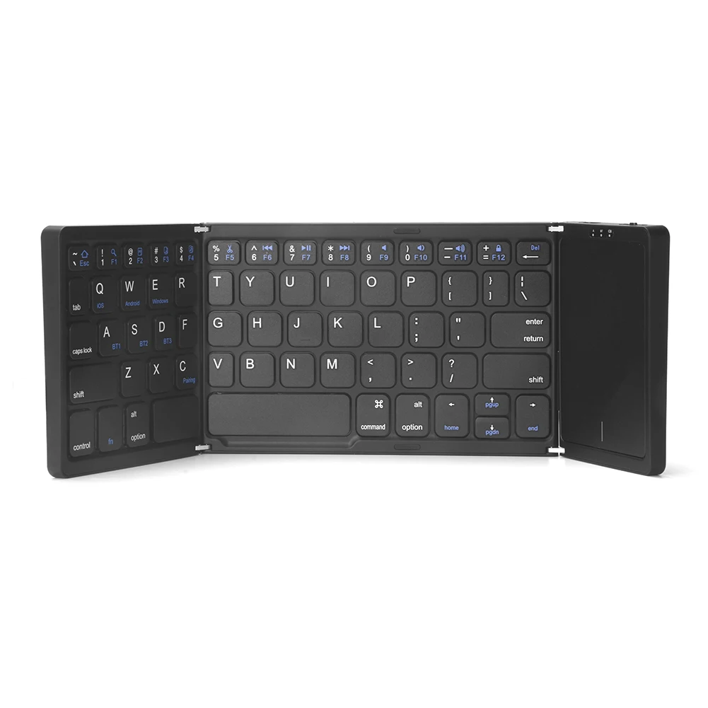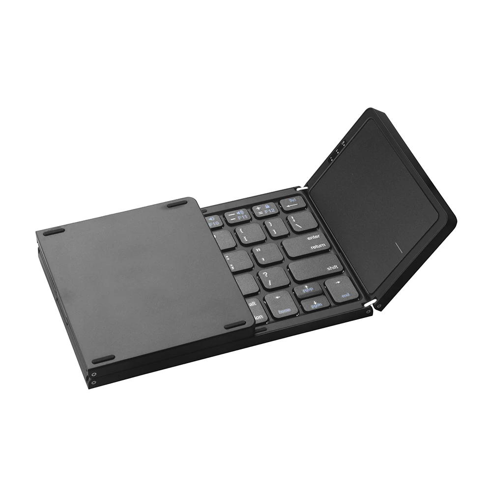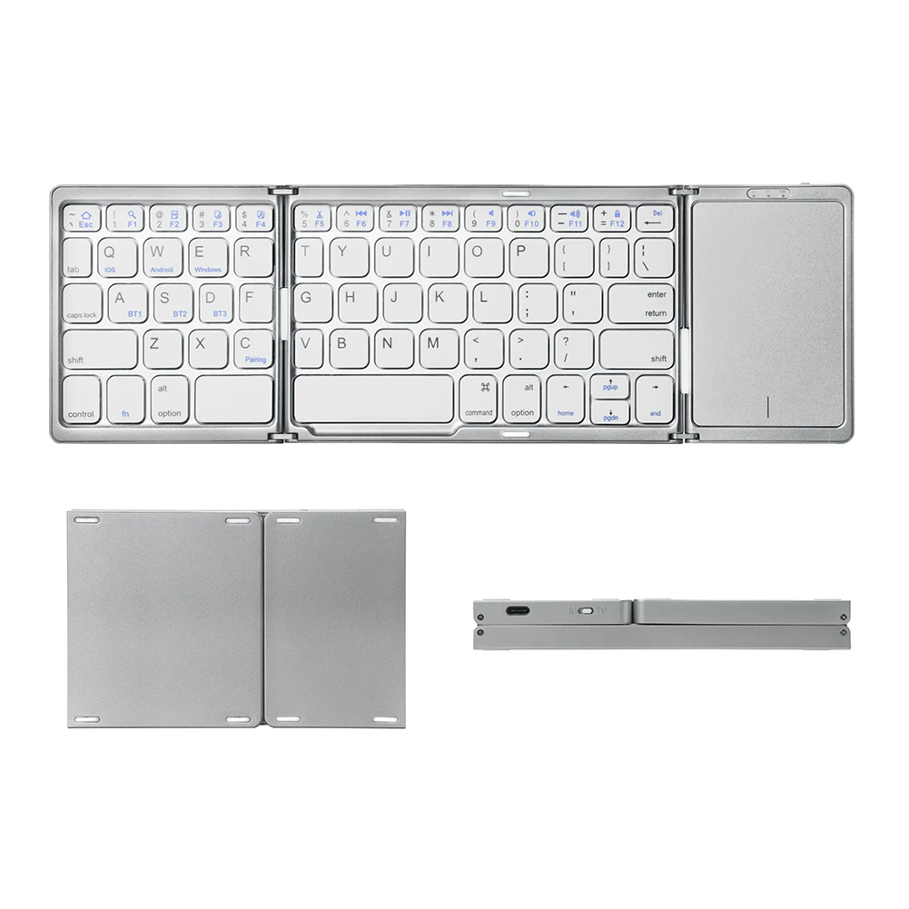 Teclado plegable inalámbrico Teclado compatible con Bluetooth 64 teclas Touchpad Teclado recargable para Windows Android Tablet PhoneCaracterística: 1. Control maestro 5,1 compatible con Bluetooth American Broadcom:Bajo retraso, rendimiento estable 2. Con izquierdo y derecho botones, panel táctil de gran tamaño:La experiencia del panel táctil del portátil es lo más cercana posible. 3. Conexión compatible con Bluetooth de 3 canales:Admite la conexión simultánea de hasta 3 dispositivos compatibles con Bluetooth y la conmutación arbitraria antes de 3 dispositivos 4. Batería de litio recargable:Batería de litio recargable de gran capacidad integrada de 140mAh, modo de espera extra largo, protección del medio ambiente 5.Compatibilidad:Compatibilidad multidispositivo y multisistema, no admite TV stick. Descripción: Diseño del ángulo de inclinación del cuerpo: una experiencia de escritura más cómoda, reduciendo la fatiga causada por escribir durante mucho tiempo 3 Teclado plegable: combina la experiencia de escritura perfecta del teclado de tamaño estándar con la ventaja de tamaño pequeño portátil que aporta el plegado Almohadilla de goma antideslizante: 12 piezas de almohadilla de goma antideslizante, reduciendo la entrada incorrecta y proporcionando una experiencia de entrada estable. Especificación: Certificación: CE Origen: China continental Aplicación: Escritorio, portátil, tableta Idioma: inglés Estilo: Plegable Paquete: Sí Modelo: B089T Proceso de material: inyección de combustible ABS Modo de conexión: compatible con Bluetooth Batería: batería de litio de 140mAh Interfaz de carga: Tipo-C Número de teclas: 64 teclas Estructura clave: pies de tijeras Diseño clave: inglés Soporte del sistema: Para Win/Android/IOS/OS/HMS Voltaje y corriente de funcionamiento: 3,2-4,2 V 3mA Corriente de funcionamiento del panel táctil: 11mA Corriente de reposo/reposo: 0.7mA/16 μ A Vida útil: 45H Tiempo en espera: 90 días Vida útil clave: 3 millones de ciclos Peso del teclado: 215G Tamaño del teclado: desplegar 304,31x98,12x9,86mm/11,9*3,85*0,38 pulgadas, plegado: 152x98,12x19,83mm/6x3,85x0,8 pulgadas Peso del paquete: 274G Tamaño del paquete: 186*122*24mm/7,3*4,8*0.94in Color: negro, plata, gris Nota: Debido a los diferentes monitores y efectos de luz, el color real del artículo puede ser ligeramente diferente del color que se muestra en las imágenes. ¡Gracias! Permita una desviación de medición de 1-2cm debido a la medición manual. 1 x teclado1 x cable de carga 1 x instrucciones