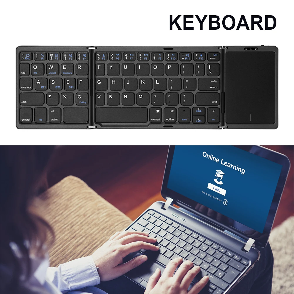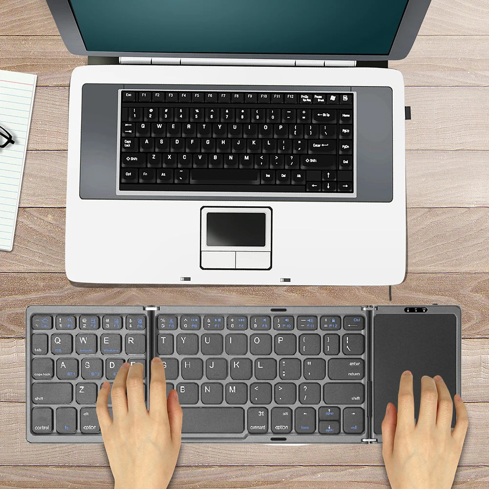 3 Teclado plegable: combina la experiencia de escritura perfecta del teclado de tamaño estándar con la ventaja de tamaño pequeño portátil que aporta el plegado