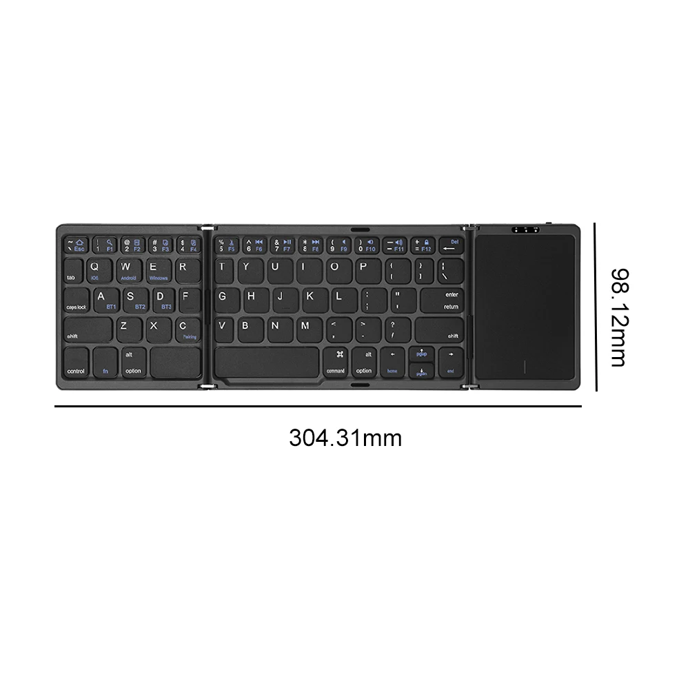 Tamaño del teclado: desplegar 304,31x98,12x9,86mm/11,9*3,85*0,38 pulgadas, plegado: 152x98,12x19,83mm/6x3,85x0,8 pulgadas