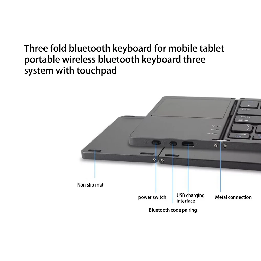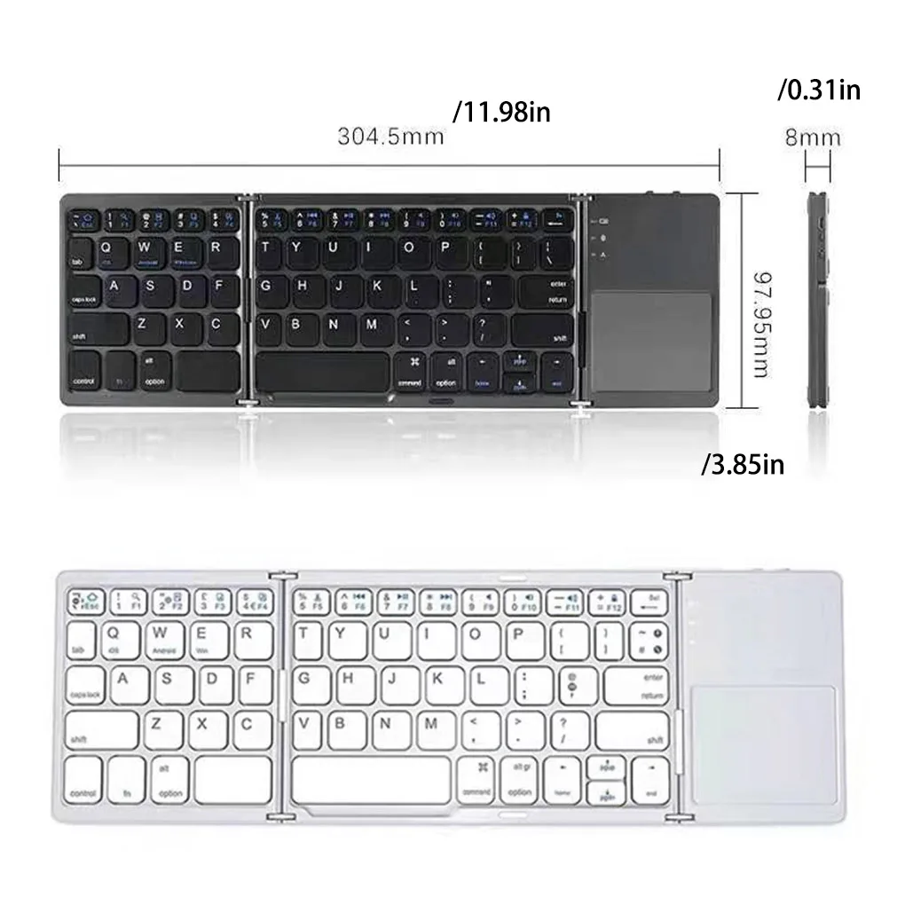 Material fino: el teclado está hecho de plástico ABS fino, que es firme, duradero y no es fácil de dañar.Plegable: el teclado está diseñado para ser plegable, lo cual es conveniente para que lo llevemos con nosotros.Inalámbrico: el teclado está diseñado para ser compatible con Bluetooth 3,0, que es fácil de conectar y usar.Uso amplio: el teclado se puede utilizar con muchos dispositivos como computadora, computadora portátil, tableta, teléfono, etc.Recargable: el teclado está diseñado para funcionar con baterías con micro interfaz, lo que nos permite recargar energía fácilmente.