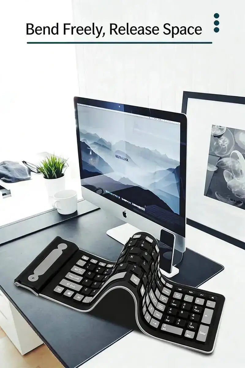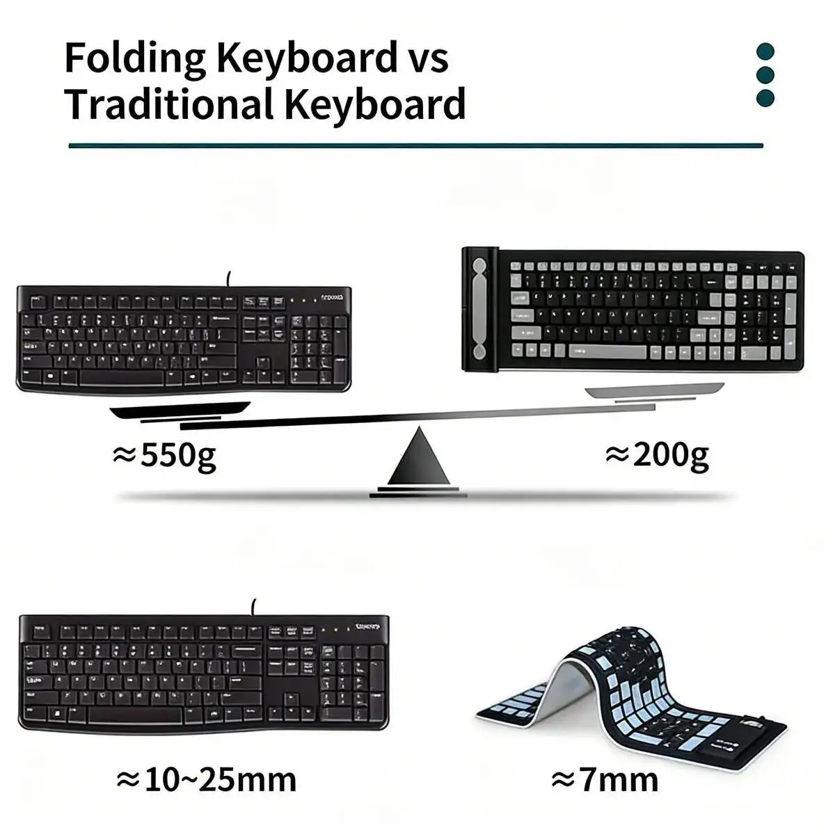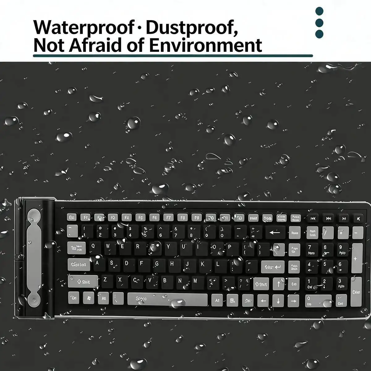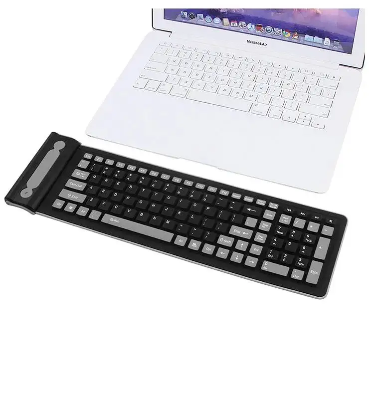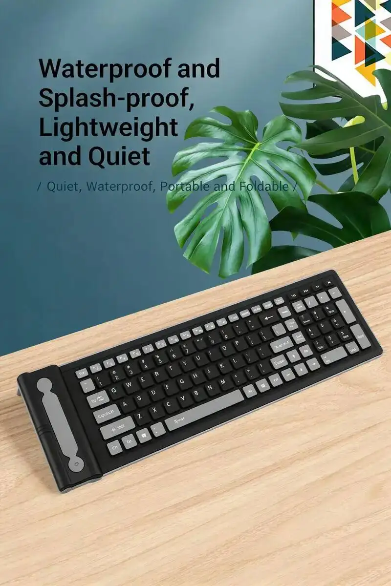 Teclado suave de silicona silencioso inalámbrico de 2,4G, teclado ligero plegable enrollable impermeable a prueba de polvo para PC, portátil y uso en oficina
