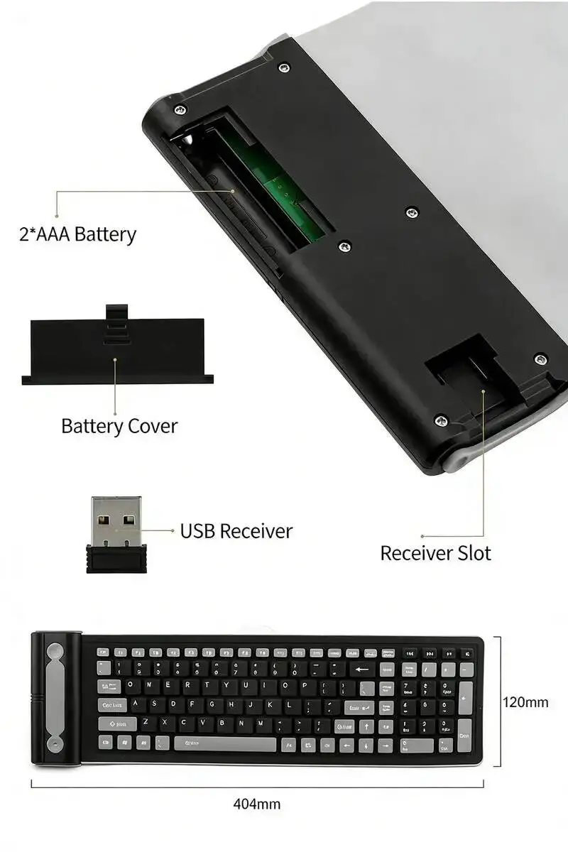Nombre: Teclado suave de silicona plegable impermeable silencioso inalámbrico de 2,4G