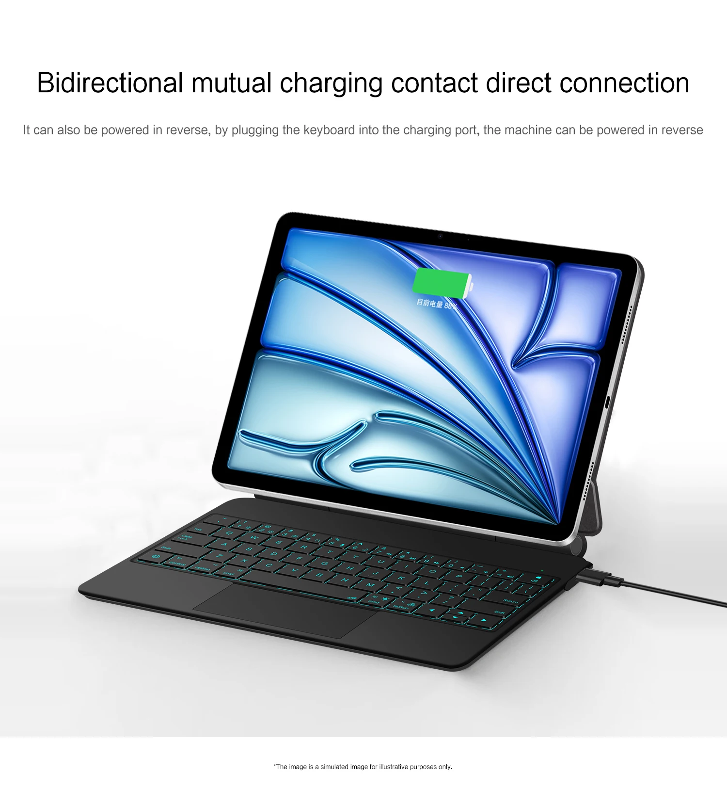 2. No es necesario cargar el teclado sin batería incorporada. Cuando la tableta y el teclado están conectados, el teclado recibe energía inmediatamente de la tableta y se enciende, reduciendo la frecuencia de carga para ambos.Cuando la tableta se queda sin batería, puede conectar el teclado a una fuente de alimentación y luego la corriente de paso de la tableta se cargará.