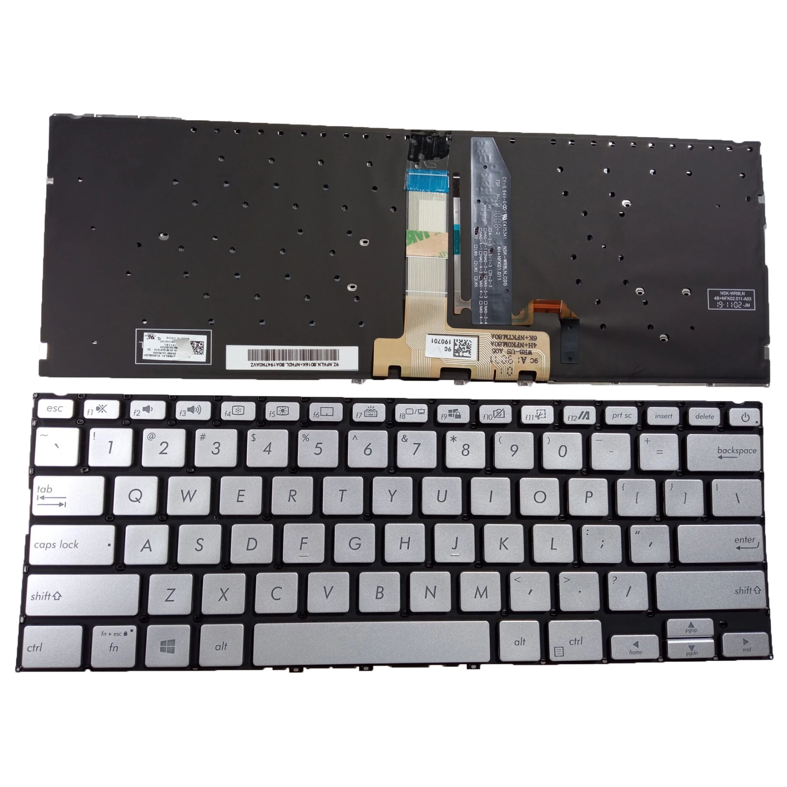 Comprar Teclado para portátil estadounidense para ASUS X432 UX432 S432 V432 K432FL X432FA X432FL sin puntero con retroiluminación plateada