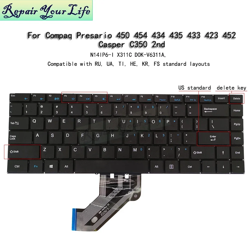 Teclado EE. UU. Brasil pt-br para Compaq Notebook Presario 440 450 442 430 438 439 454 Teclado portugués de EE. UU. N14IP6 SCDY-315-18-3