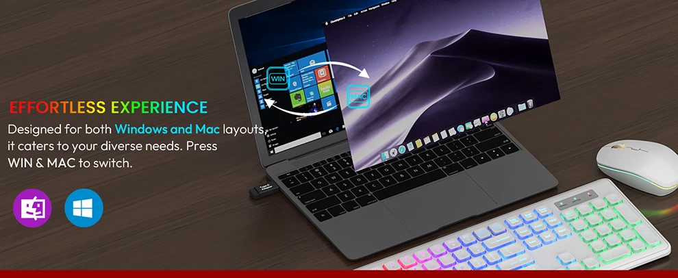 CONMUTACIÓN DE SISTEMA DE UNA TECLA: Cambie sin esfuerzo entre sistemas Windows y Mac con solo presionar un botón.Viene con un adaptador USB A y tipo C para satisfacer sus diferentes necesidades.No hay necesidad de configuraciones complicadas, lo que facilita la adaptación a varios dispositivos