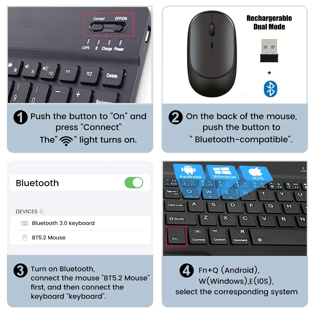 3: Encienda el interruptor compatible con Bluetooth del dispositivo como tableta/smartphone, busque un dispositivo compatible con Bluetooth, el nombre predeterminado compatible con Bluetooth del teclado: teclado compatible con Bluetooth 3,0.