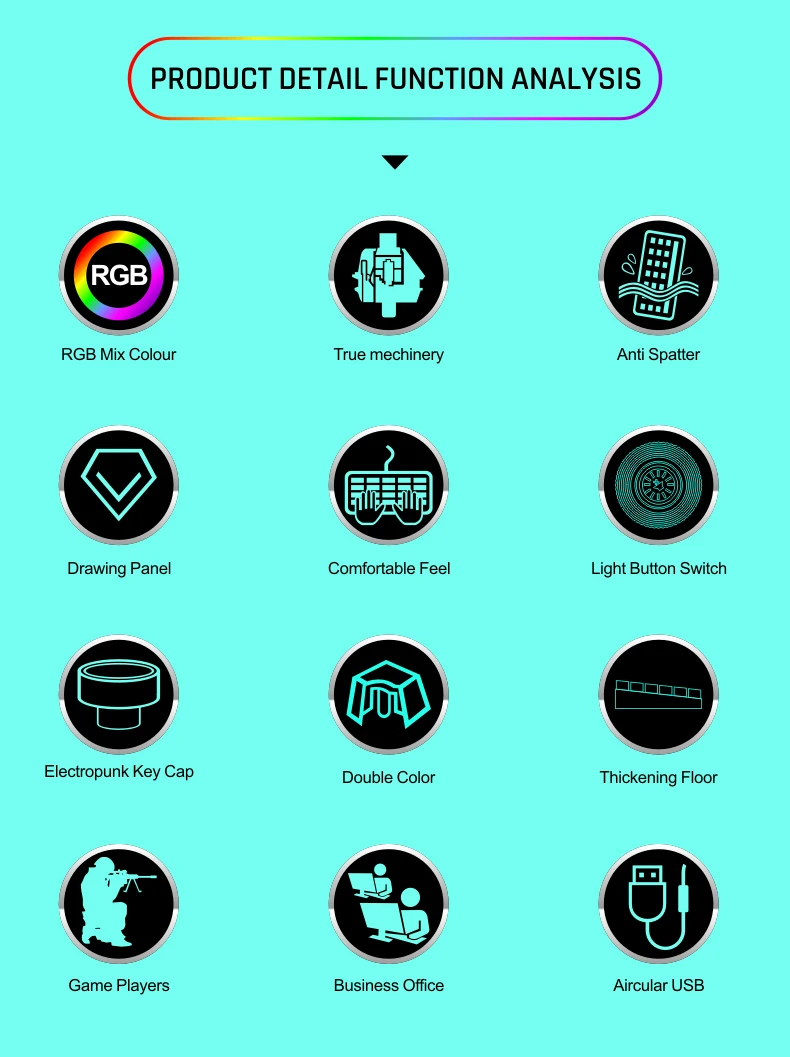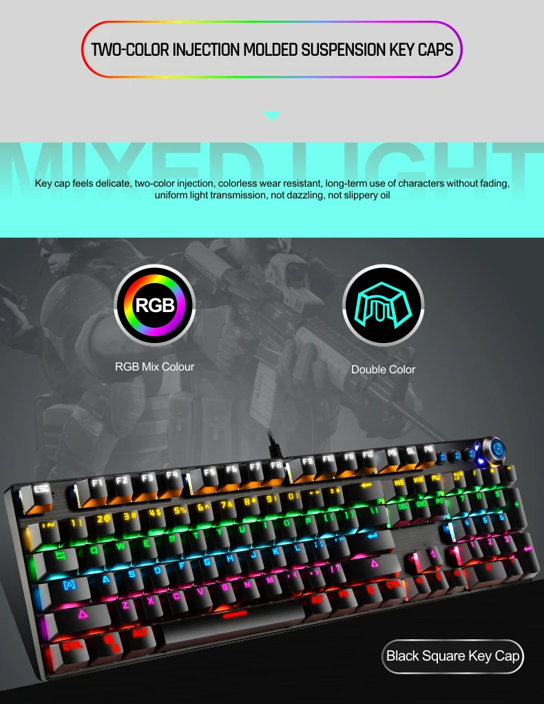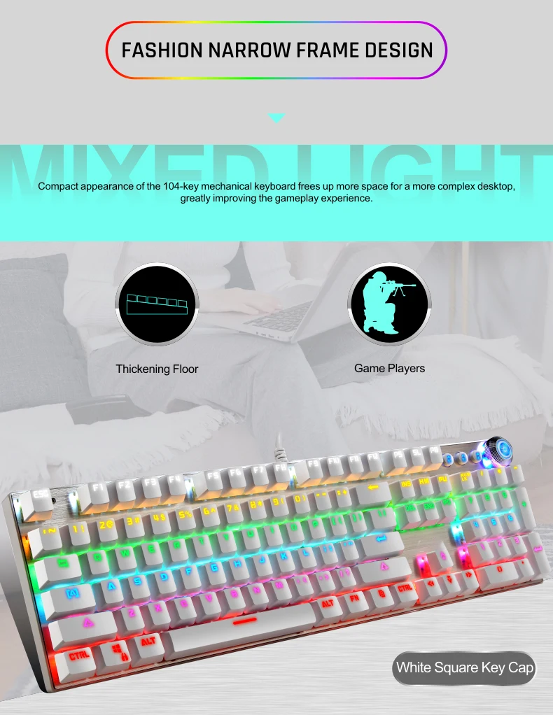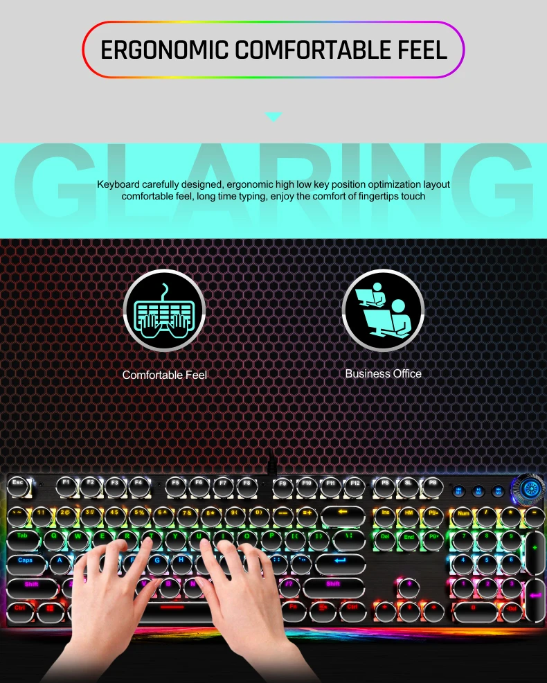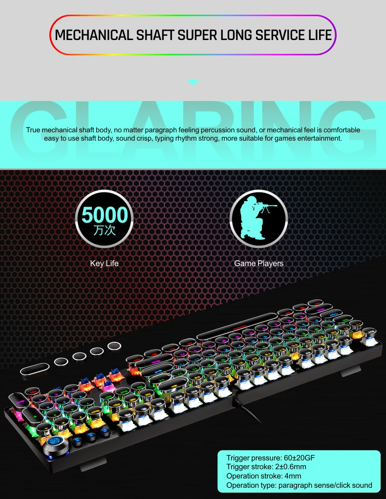Teclado redondo Punk de 104 teclas con interruptor azul, teclado de ordenador blanco, Cable USB RGB con cable negro, Teclado mecánico para juegos 100% para PC