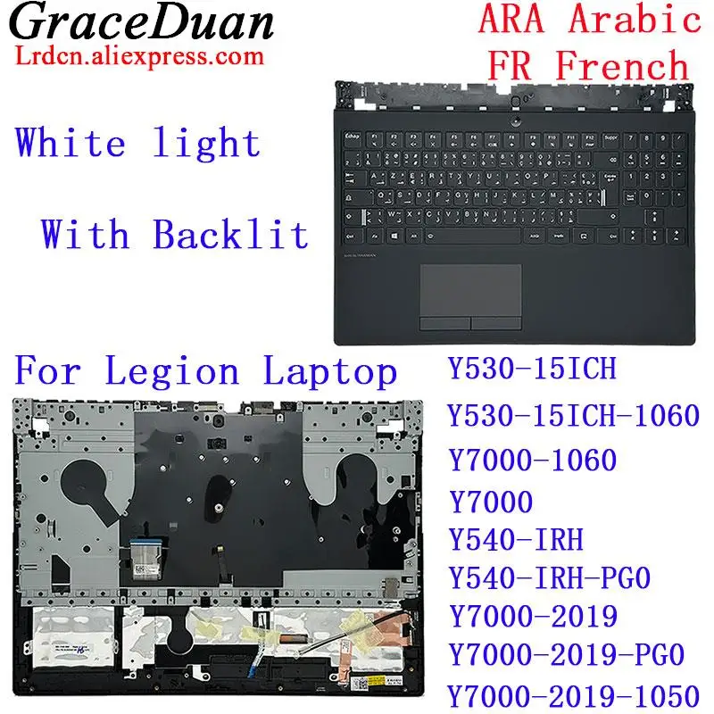 Comprar Teclado con reposamanos y funda superior para portátil Lenovo Legion Y530, 15, 15ICH, Y540, 15IRH, Y7000, 2019, US, BG, HU, KR, NDC, TR, ARA