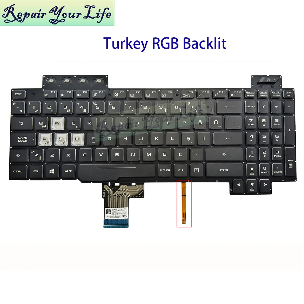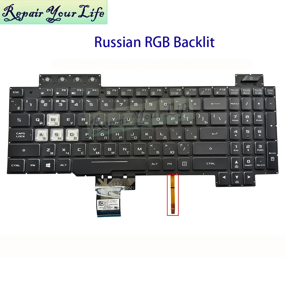 Teclado ruso con retroiluminación RGB UA para Asus TUF Gaming FX505 FX705 FX504 RU, teclas de cristal árabe alemán turco 0KNR0-6812RU00