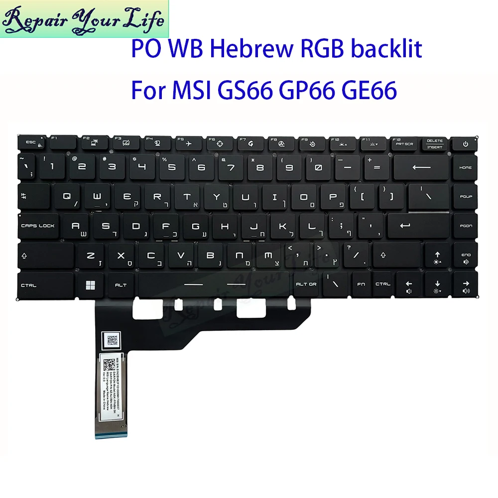 Comprar Teclado retroiluminado colorido/RGB croata hebreo portugués por tecla para MSI GS66 GP66 GE66 MS-1543 MS-1544 MS-16V1 16V4 V194222AK3
