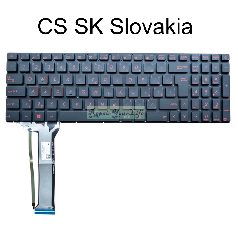 Teclado retroiluminado para ASUS ROG GL552 GL552JX GL552V VW VX CZ checo CS SK Eslovaquia azul rojo tecla grande 9Z.N8BBU.S0C 0KNB0-662GSK00