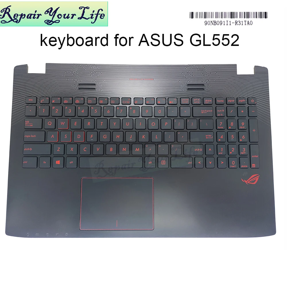 Comprar Teclado retroiluminado de EE. UU. Para ASUS ROG GL552 JX GL552V GL552VL GL552VW VX, teclados para juegos, Palmrest Touchpad, funda superior 13N0-RZA0F41