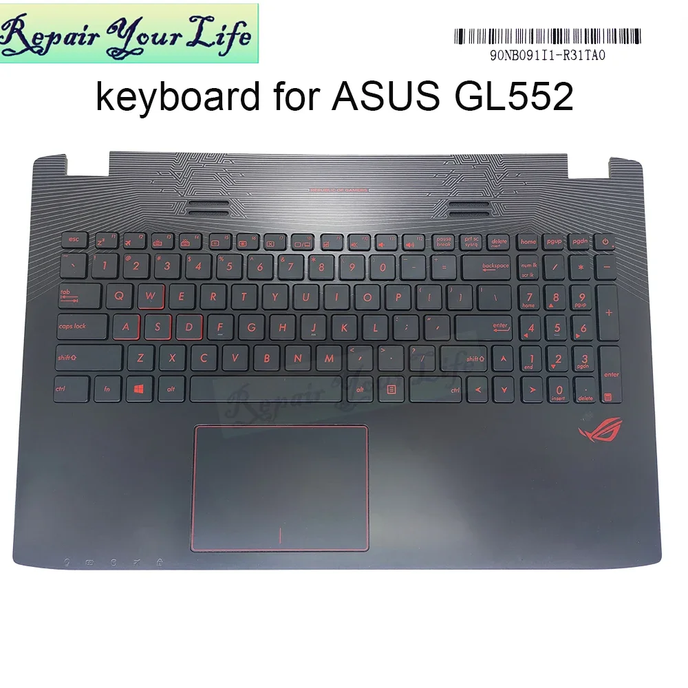Teclado retroiluminado de EE. UU. Para ASUS ROG GL552 JX GL552V GL552VL GL552VW VX, teclados para juegos, panel táctil con reposamanos, carcasa superior 13N0-RZA0F41